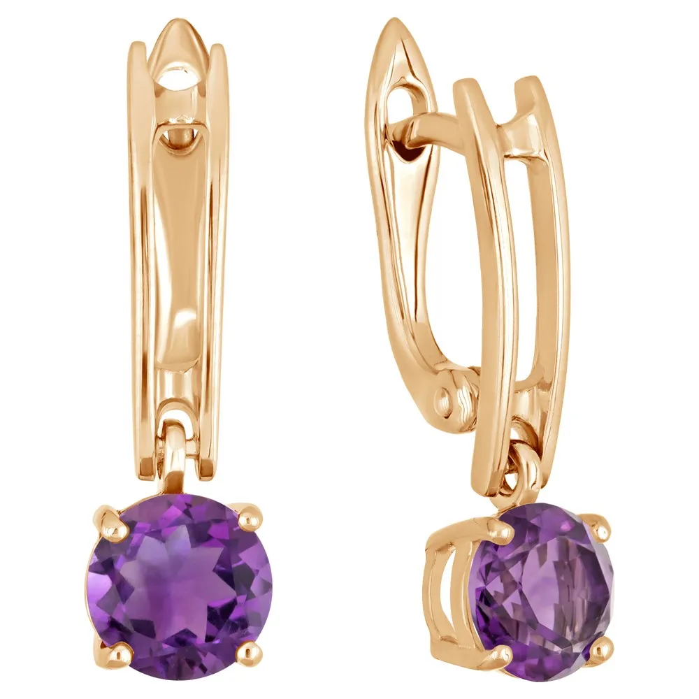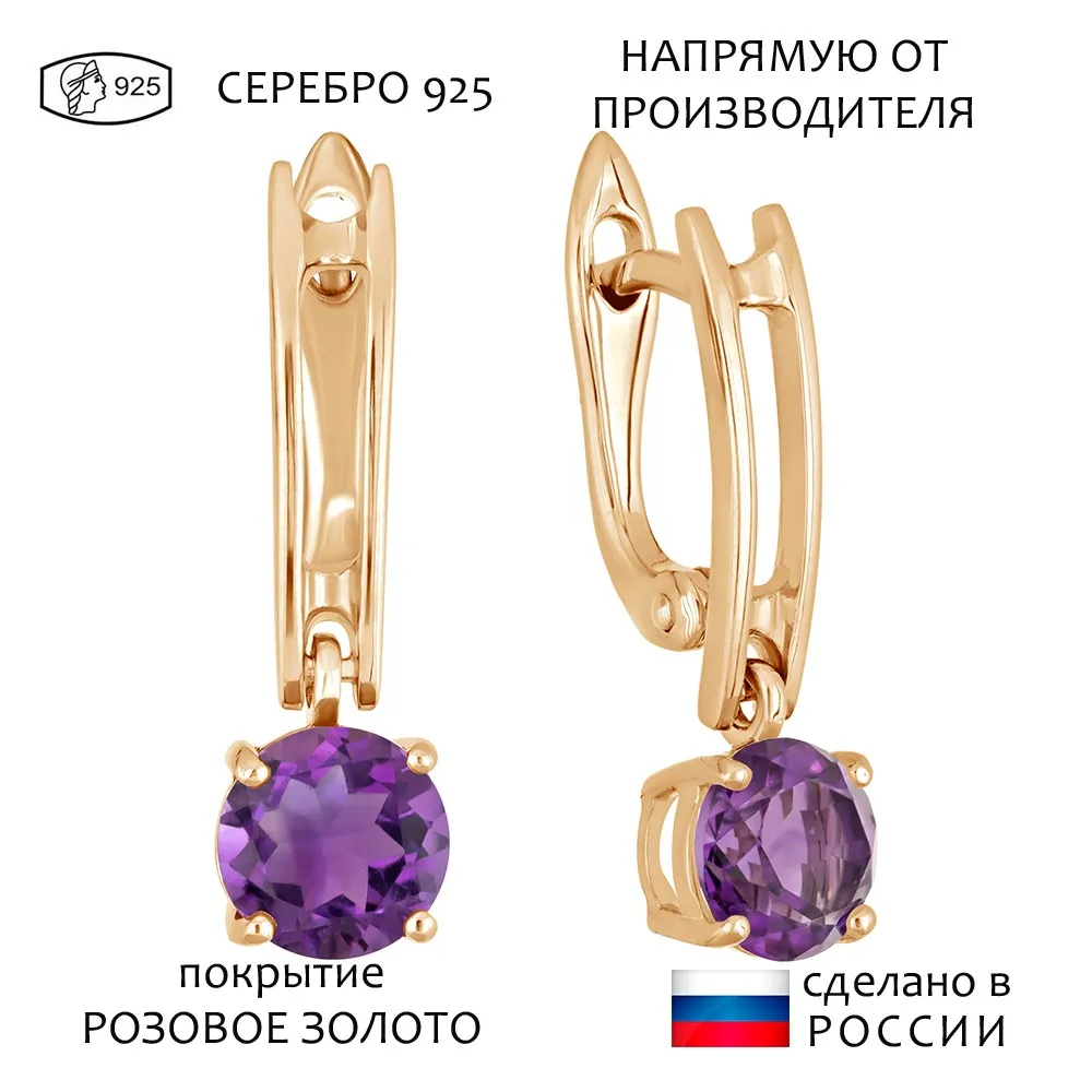 Серебряные серьги с натуральным аметистом (темным) - коллекция Классик (мини) / Розовое Золото.