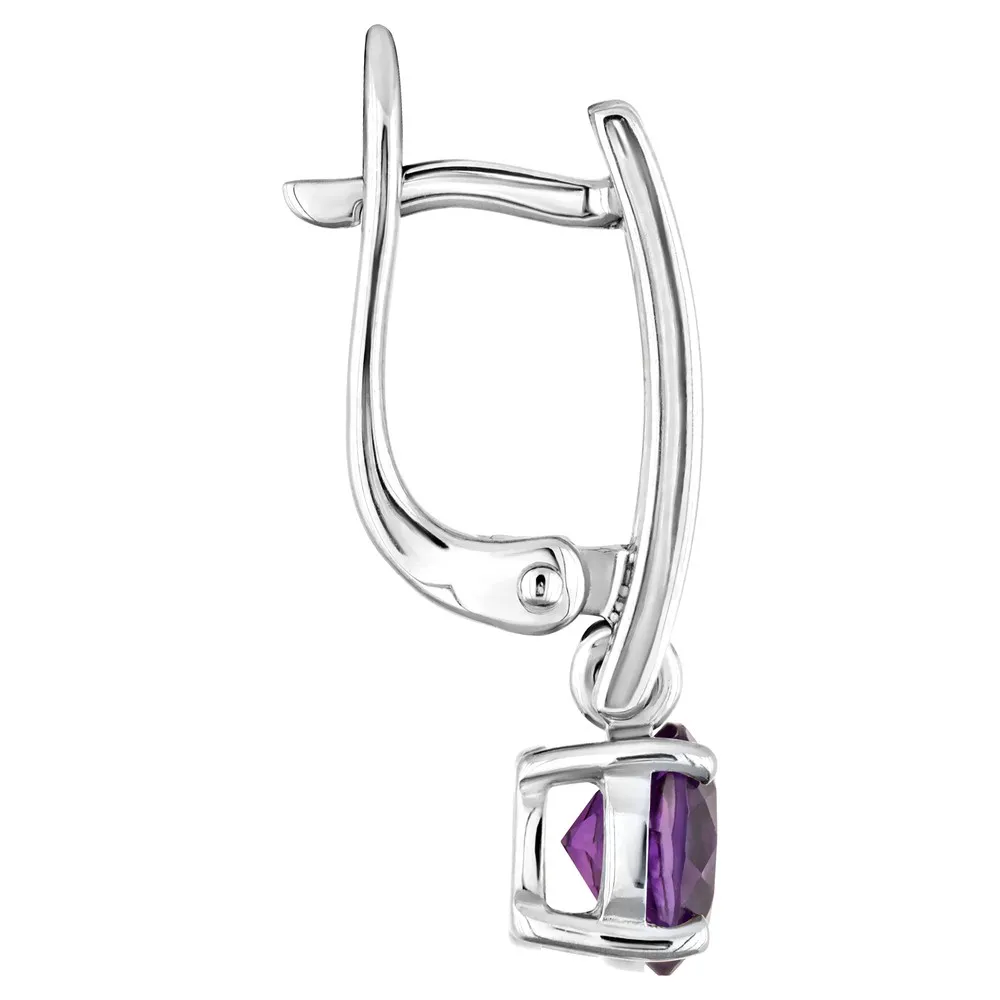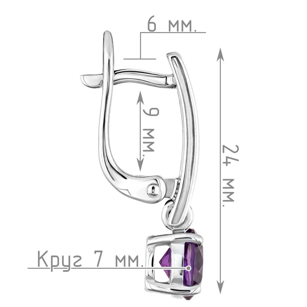 Серебряные серьги с натуральным аметистом (темным) - коллекция Классик (мини) / Белый Родий.