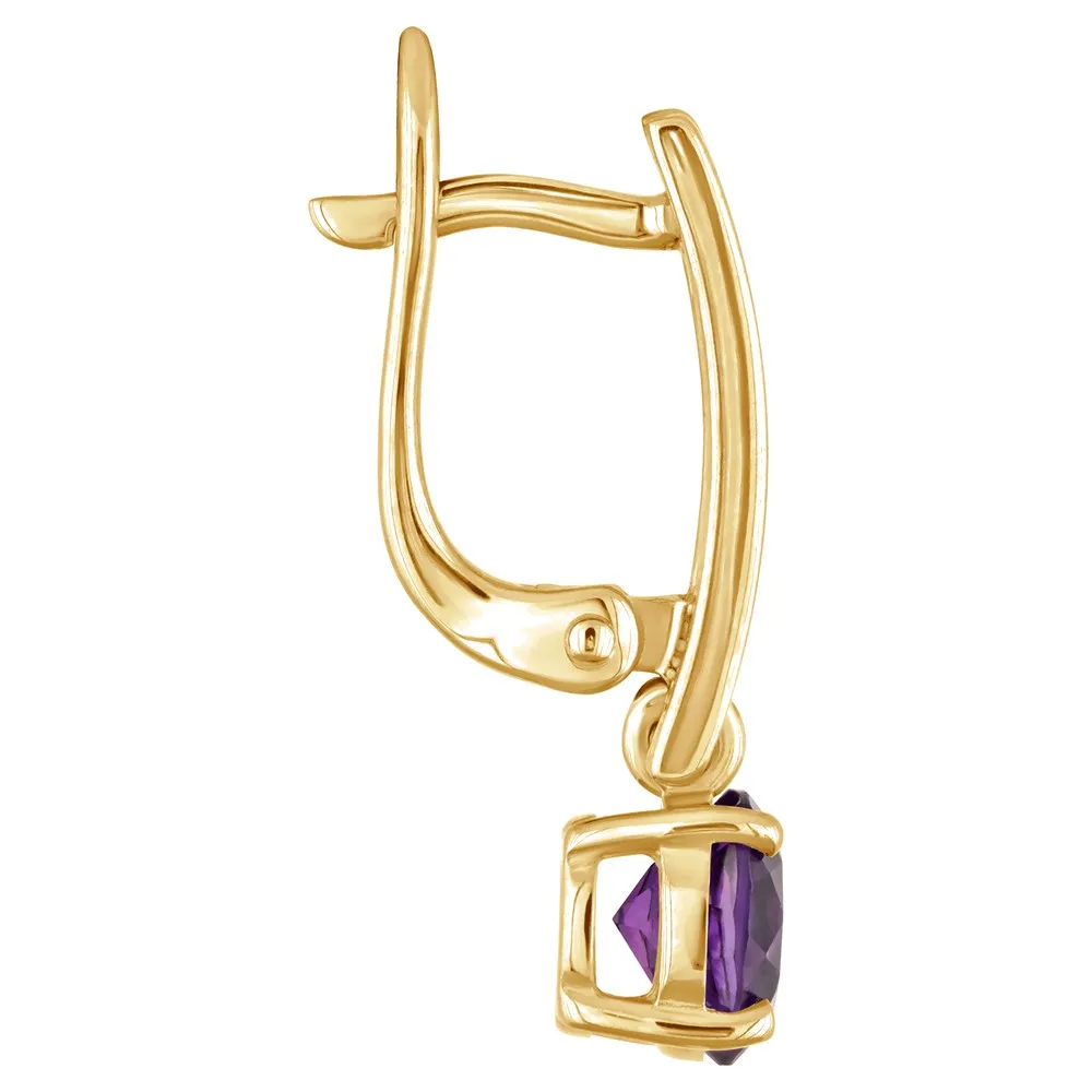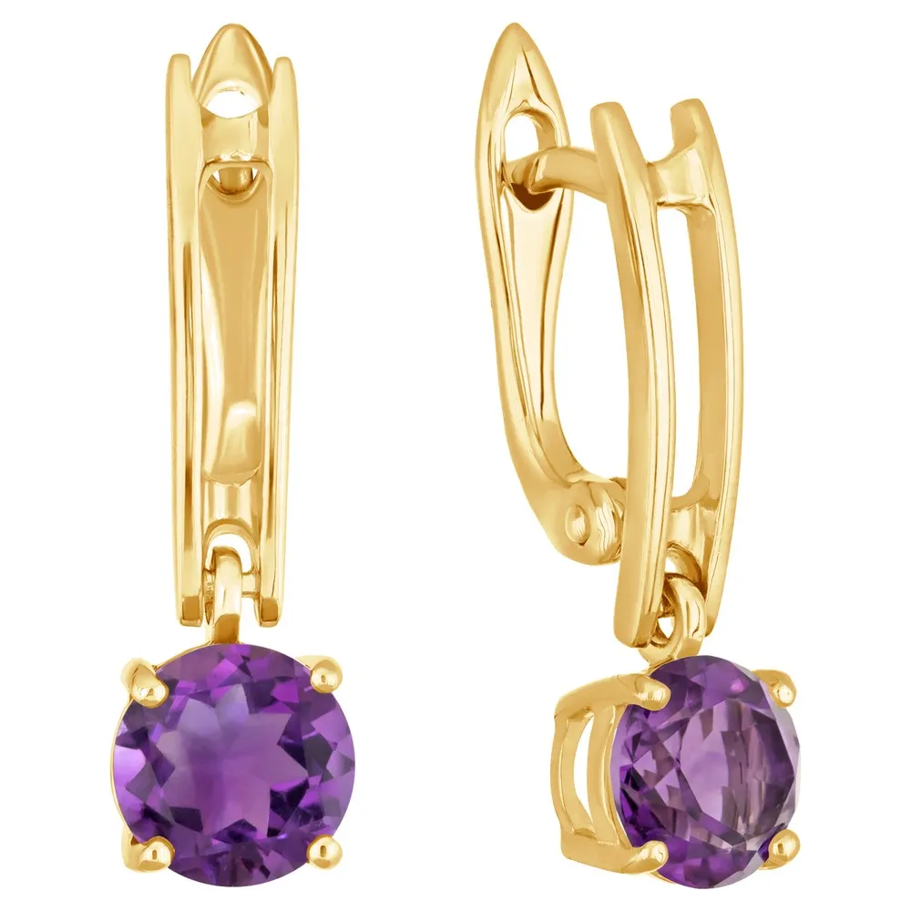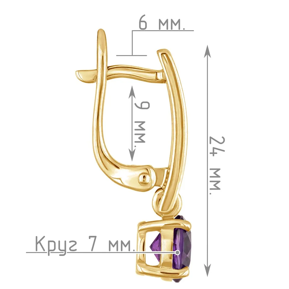 Серебряные серьги с натуральным аметистом (темным) - коллекция Классик (мини) / Желтое Золото.