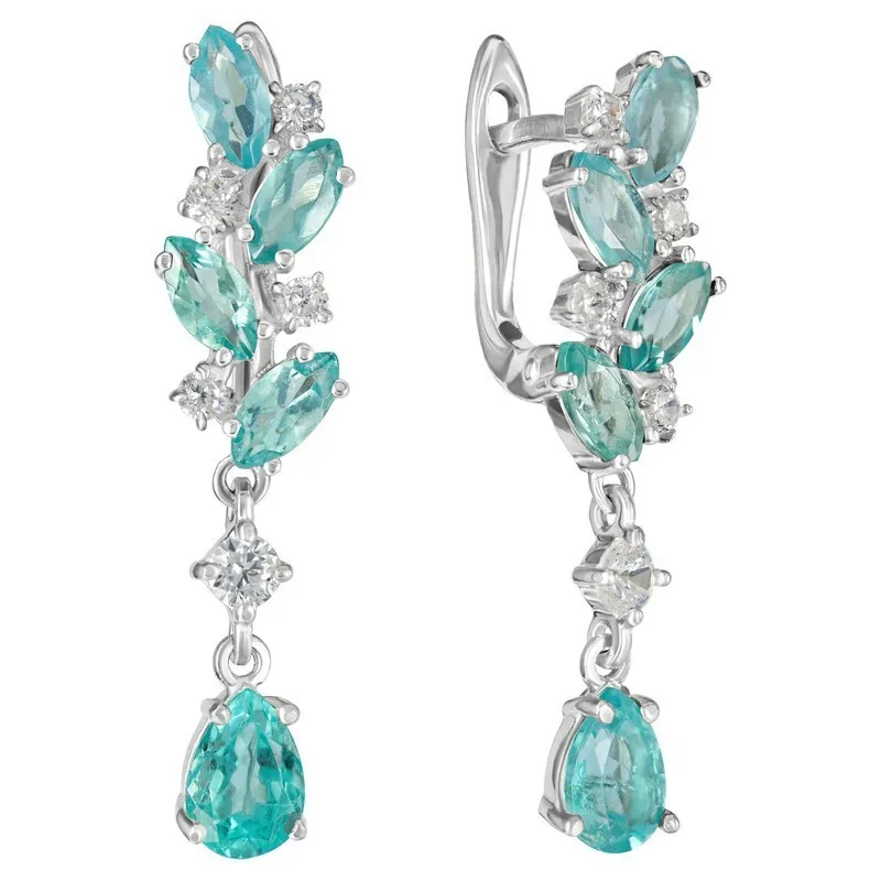 Серебряные серьги с натуральным апатитом - коллекция Росинка / Без покрытия