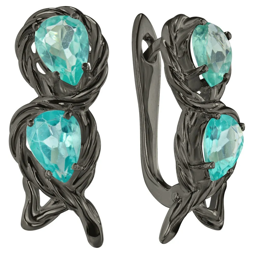 Серебряные серьги с натуральным апатитом - коллекция Ривьера, покрытие Черный Родий.