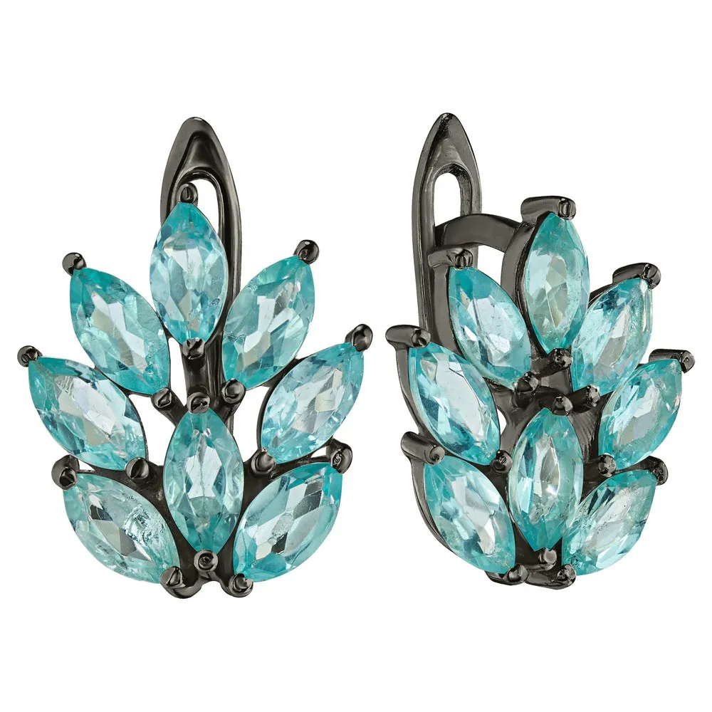 Серебряные серьги с натуральным апатитом - коллекция Искра, покрытие Черный Родий.