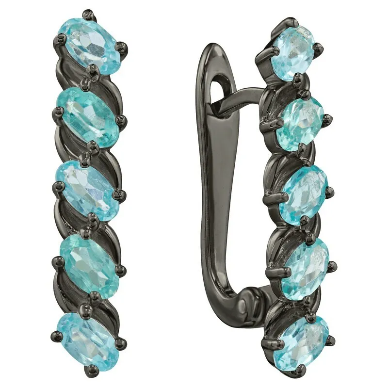 Серебряные серьги с натуральным апатитом - коллекция Колосок, покрытие Черный Родий.