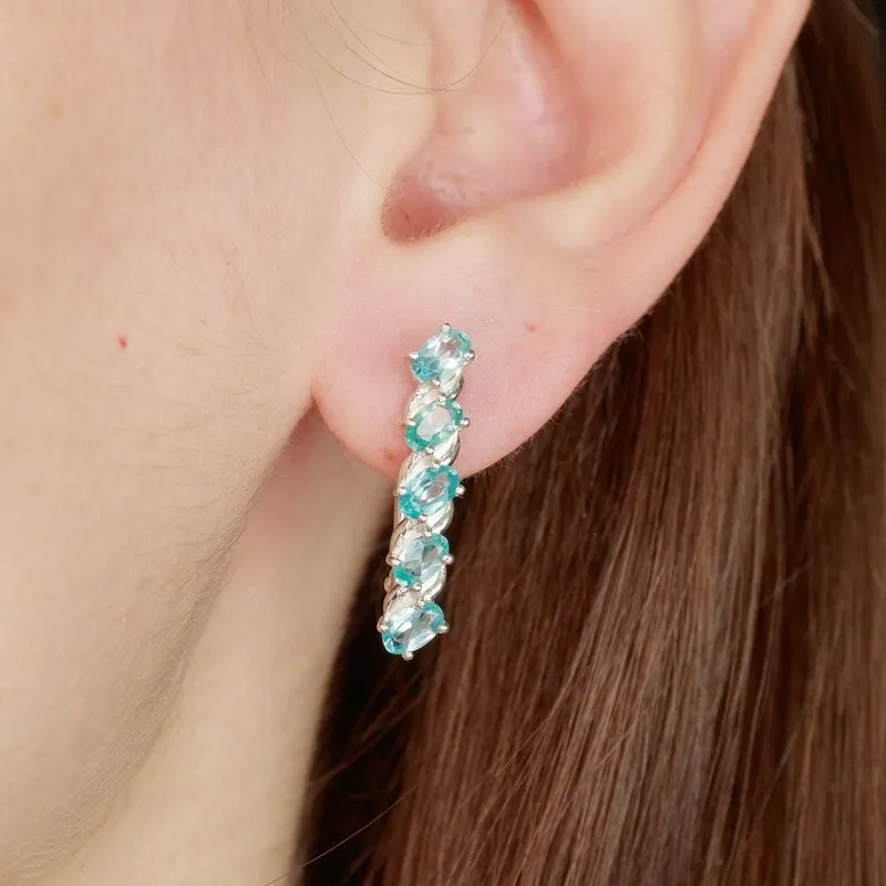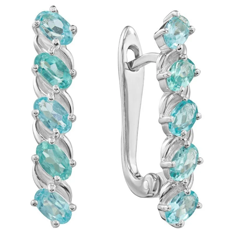 Серебряные серьги с натуральным апатитом - коллекция Колосок. Средний вес изделия с камнями 4.33 гр. Месторождение: Апатит (Мадагаскар). Апатит (Натуральный) овал 3*5 мм., средний вес: 0.25 карат. Все изделия собственного производства. Гарантия 12 месяцев.Арт. 8360. Апатит — минерал, напоминающий при огранке топаз. Имеет фосфатную природу. Сам по себе бесцветен, но примеси придают ему множество оттенков. Считается, что он приносит владельцу успокоение, умиротворение, то есть стабилизирует нервную систему и благотворно влияет на психическое и эмоциональное состояния.