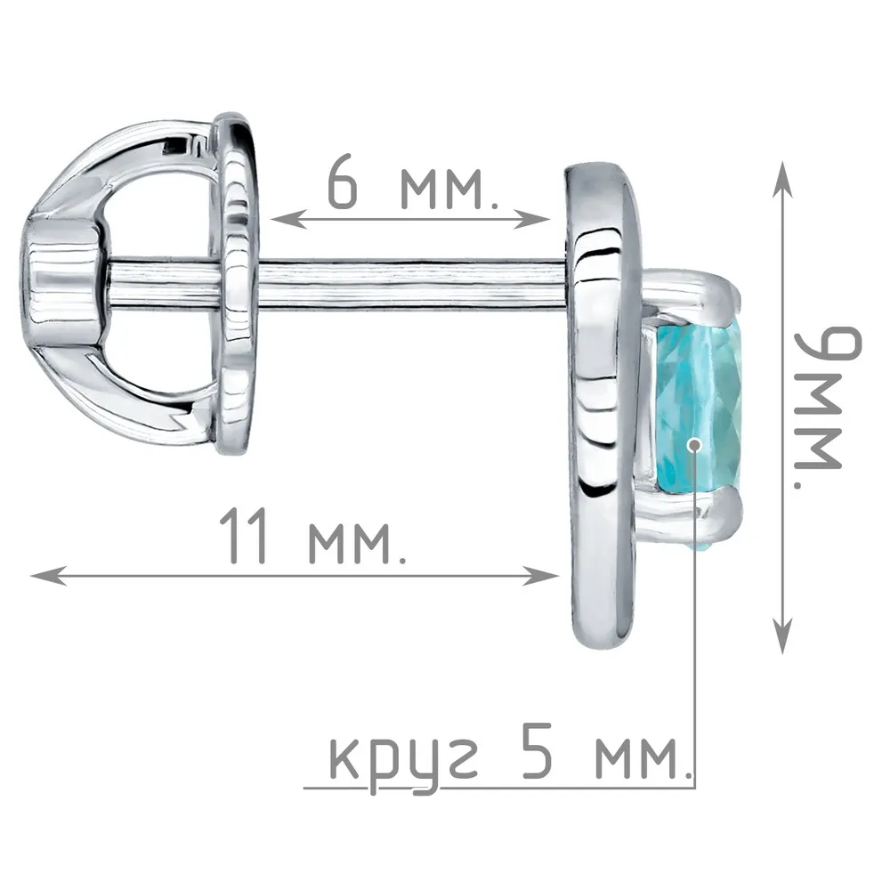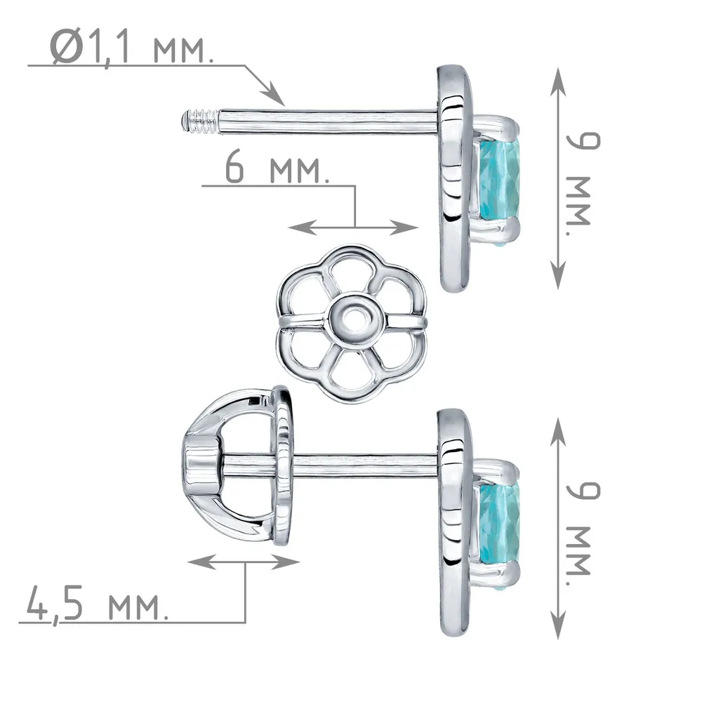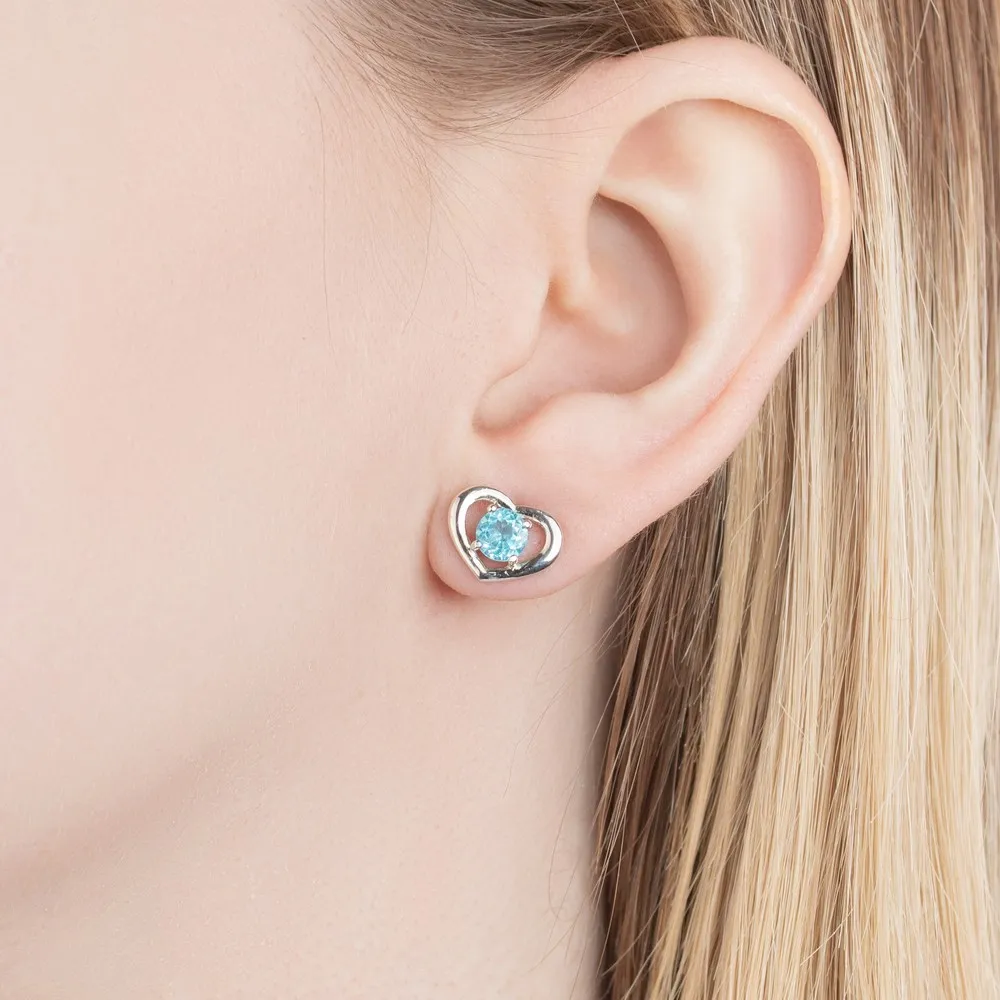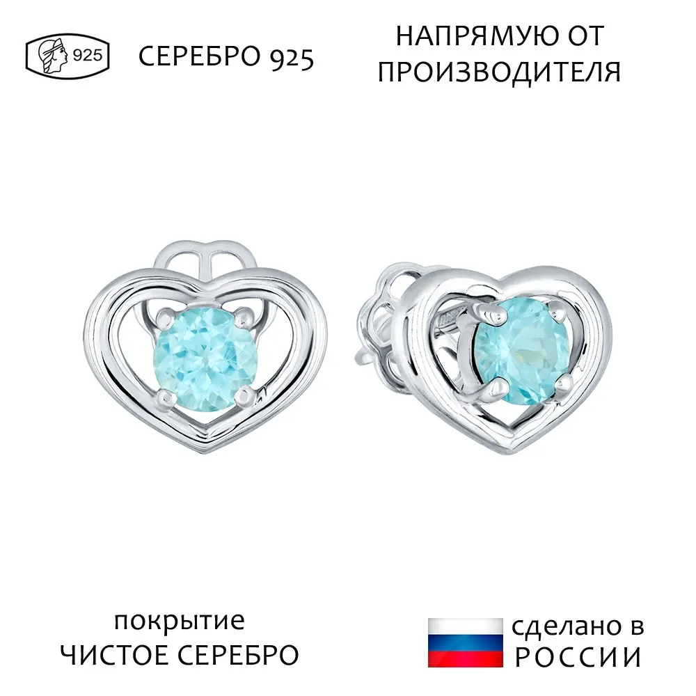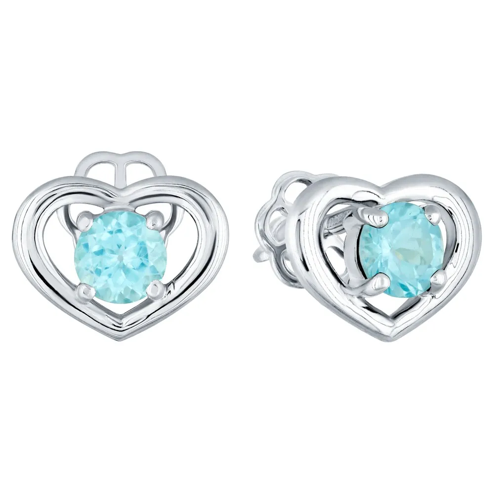 Серебряные серьги гвоздики (пусеты) с натуральным апатитом - Сердце / покрытие Чистое Серебро.