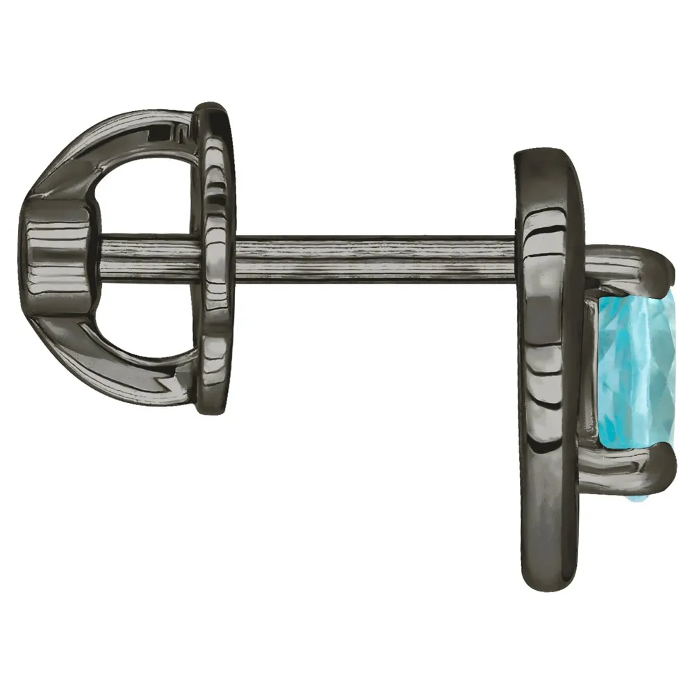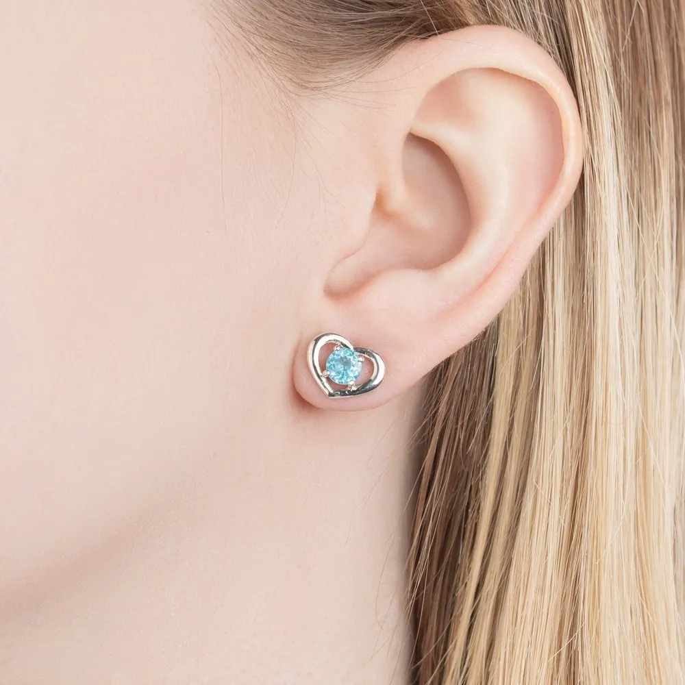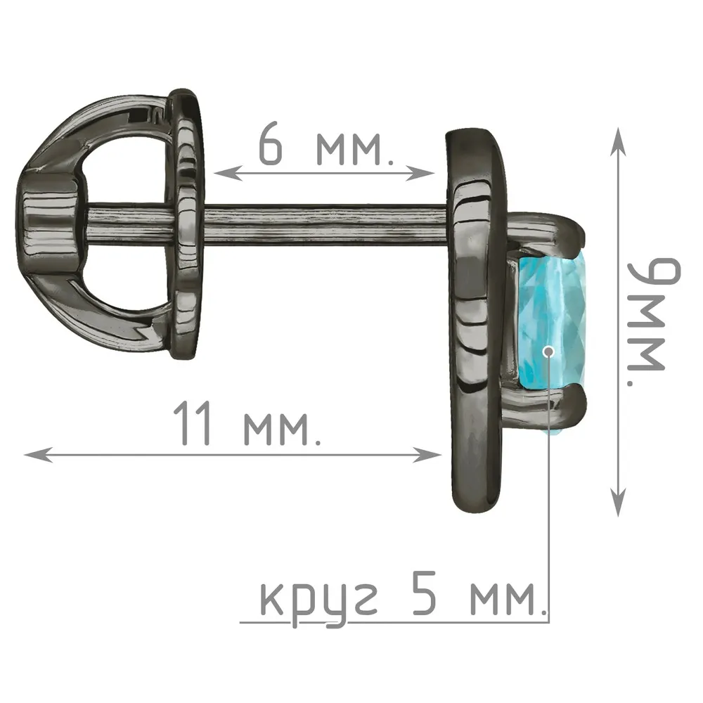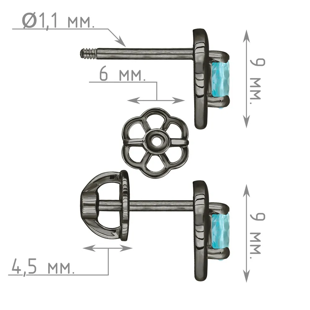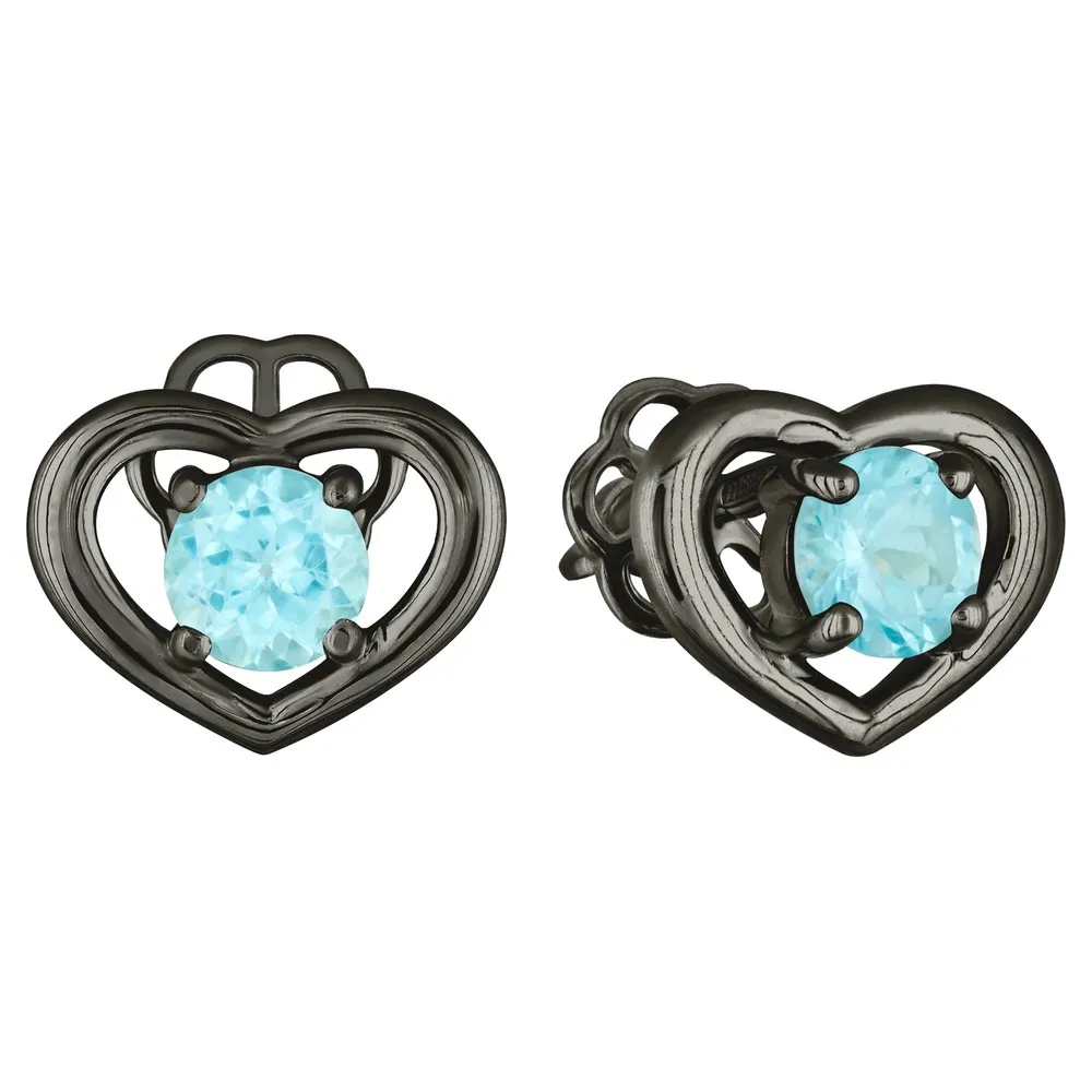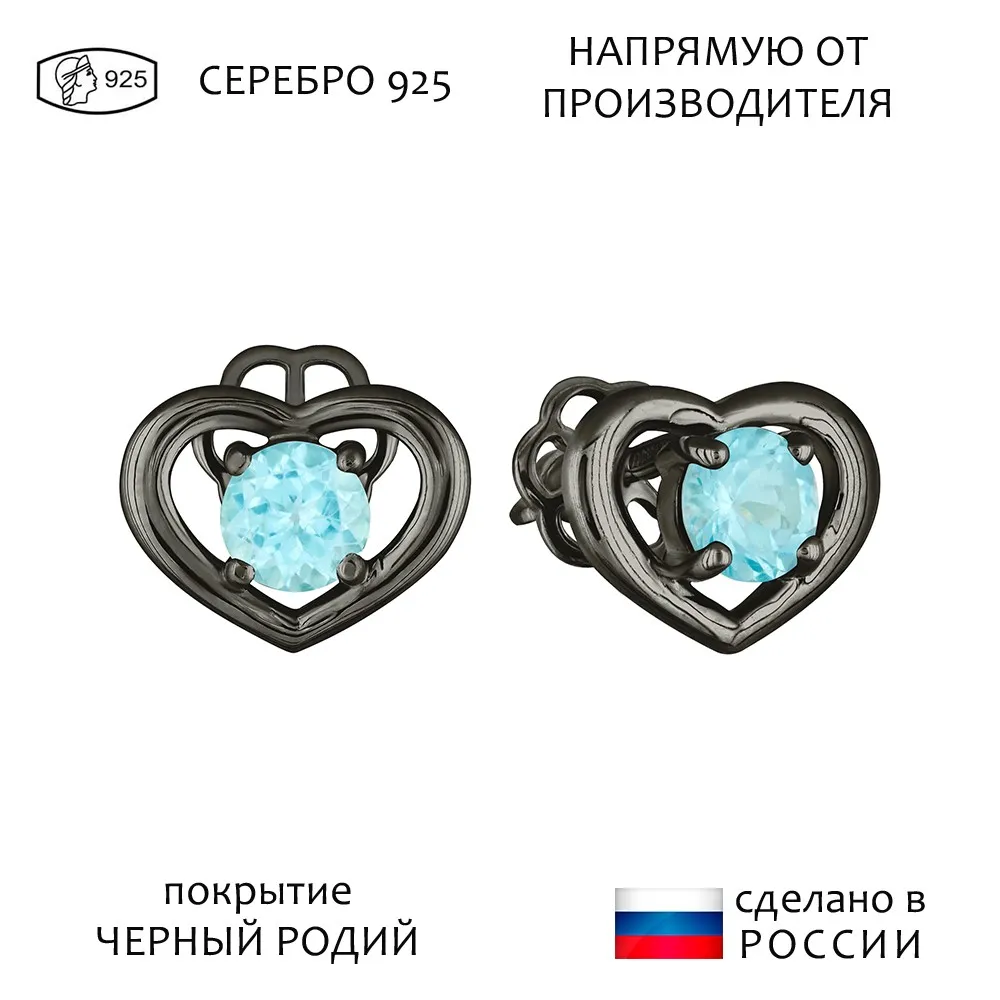 Серебряные серьги гвоздики (пусеты) с натуральным апатитом - Сердце / покрытие Черный Родий.