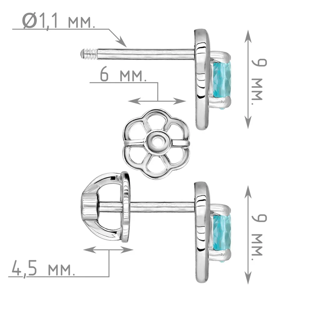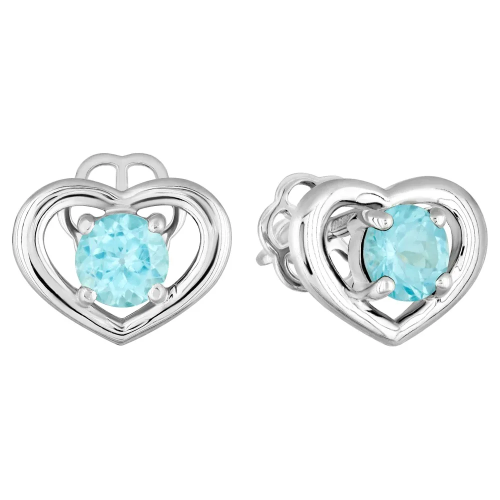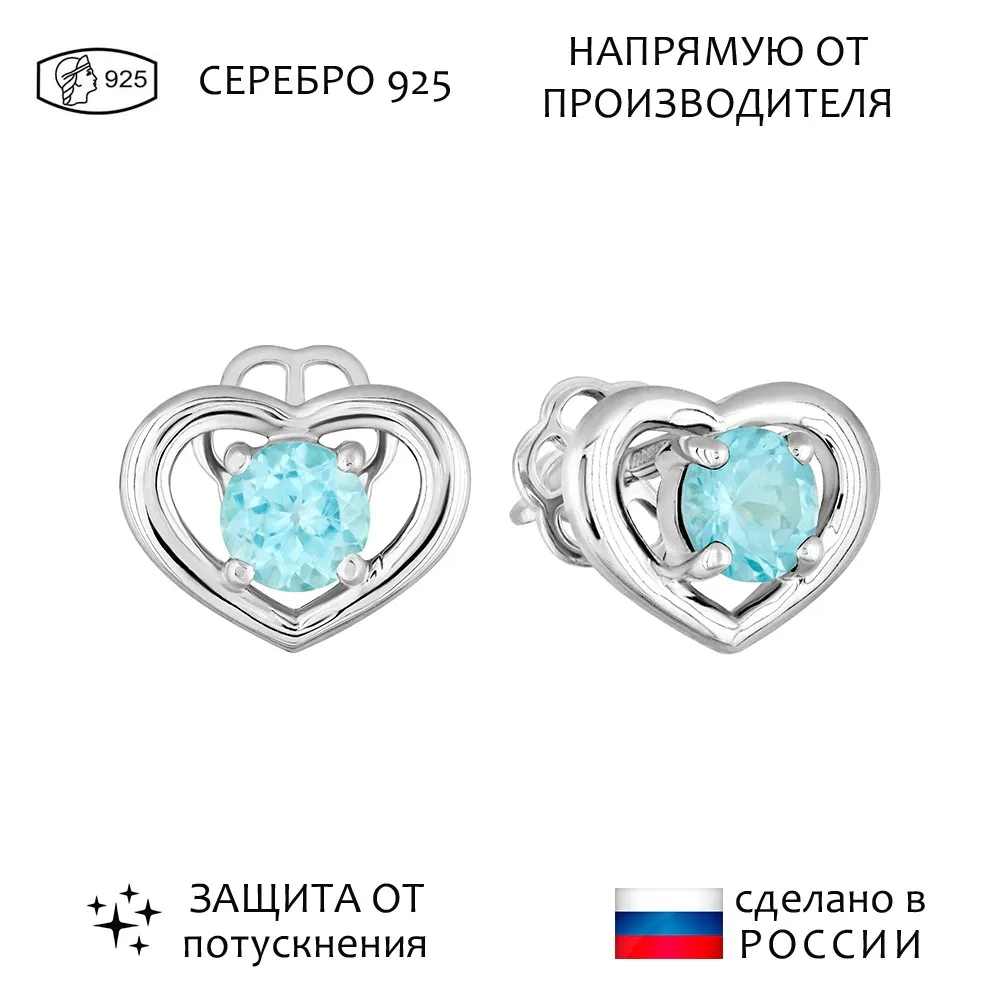Серебряные серьги гвоздики (пусеты) с натуральным апатитом - Сердце / Без покрытия.