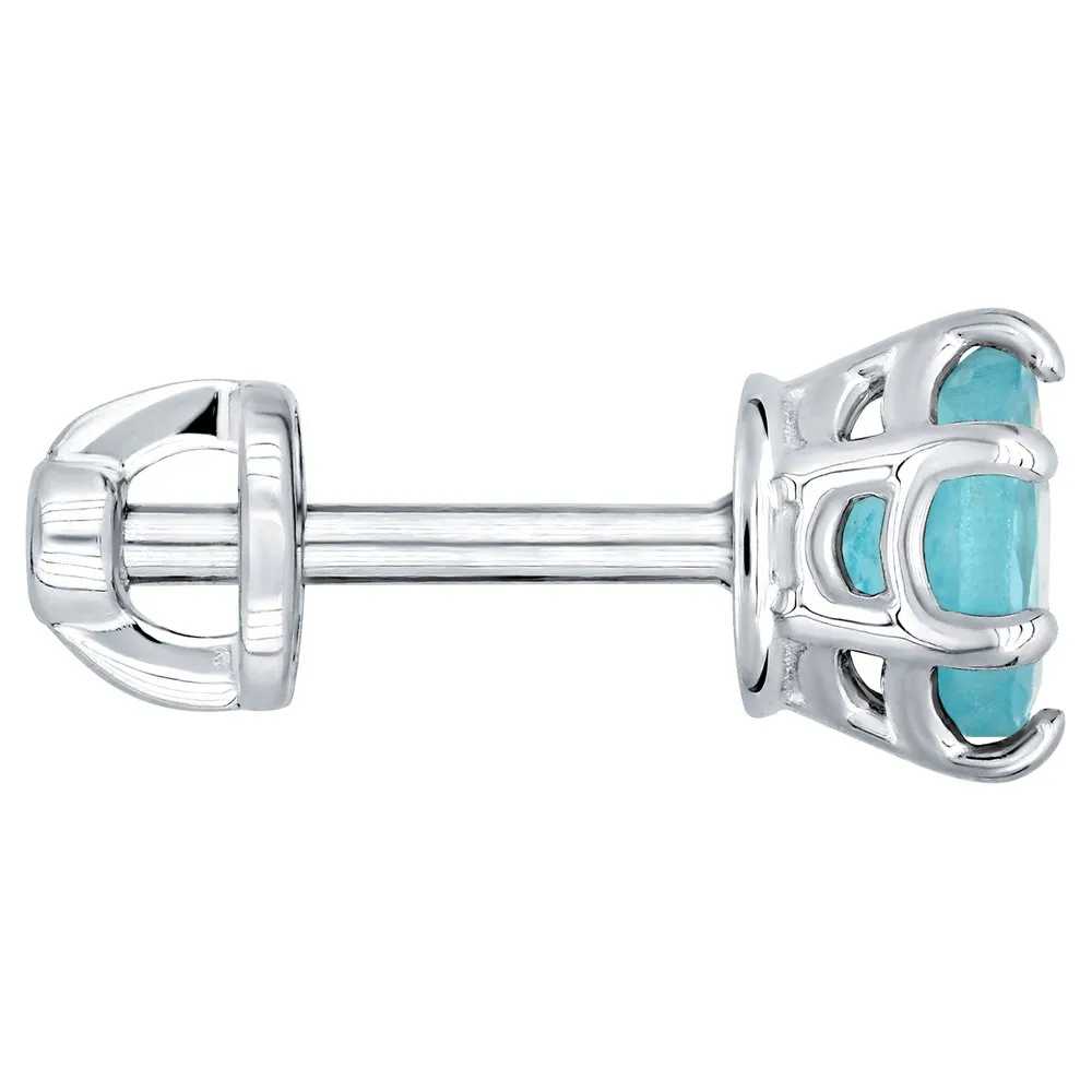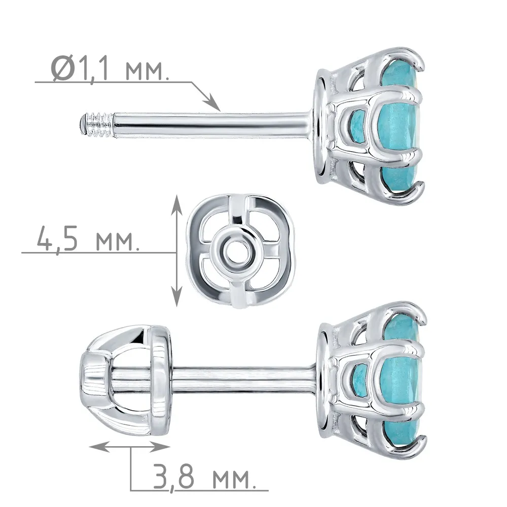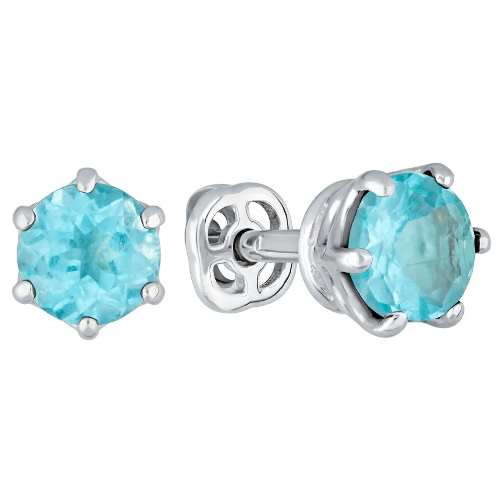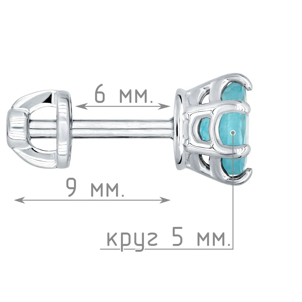 Серебряные серьги гвоздики (пусеты) с натуральным апатитом 5 мм. / Чистое Серебро.