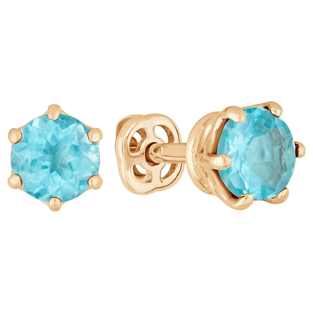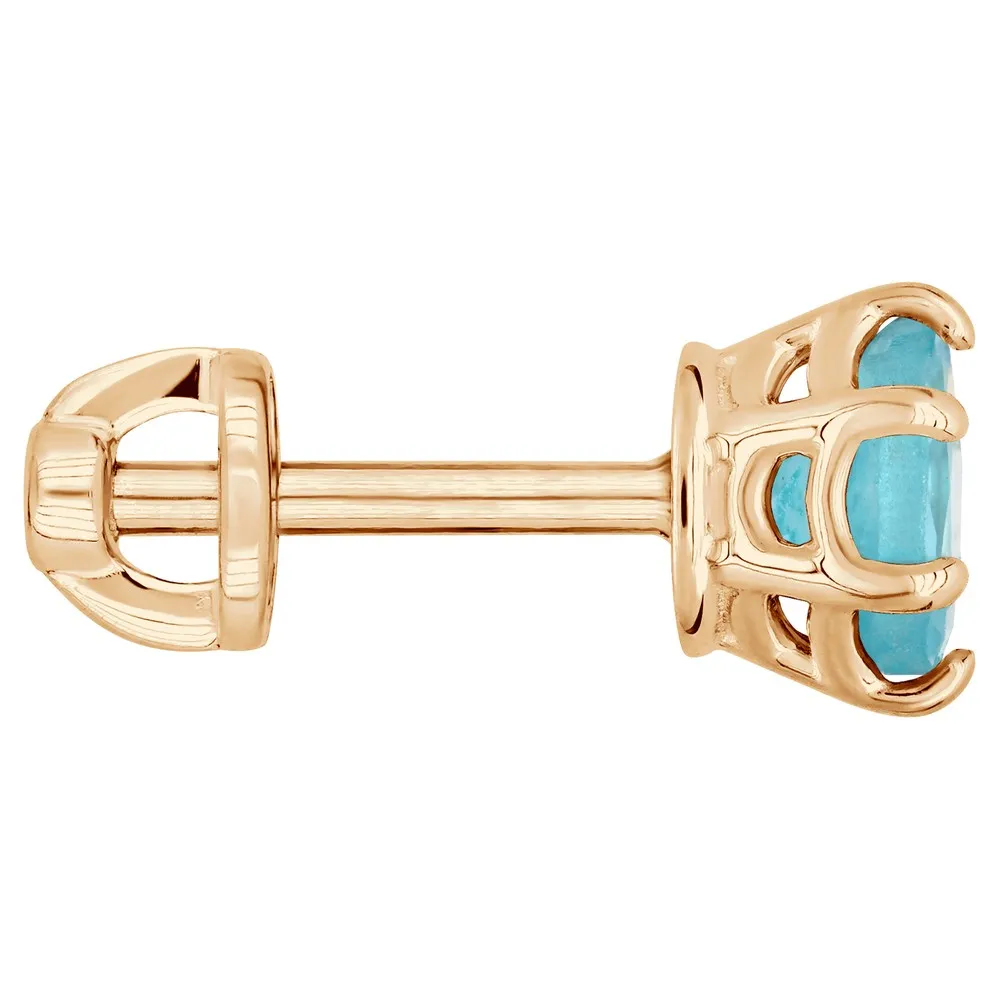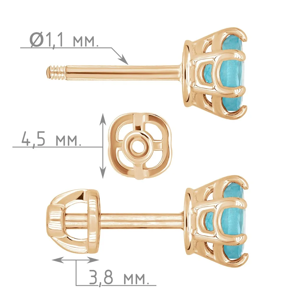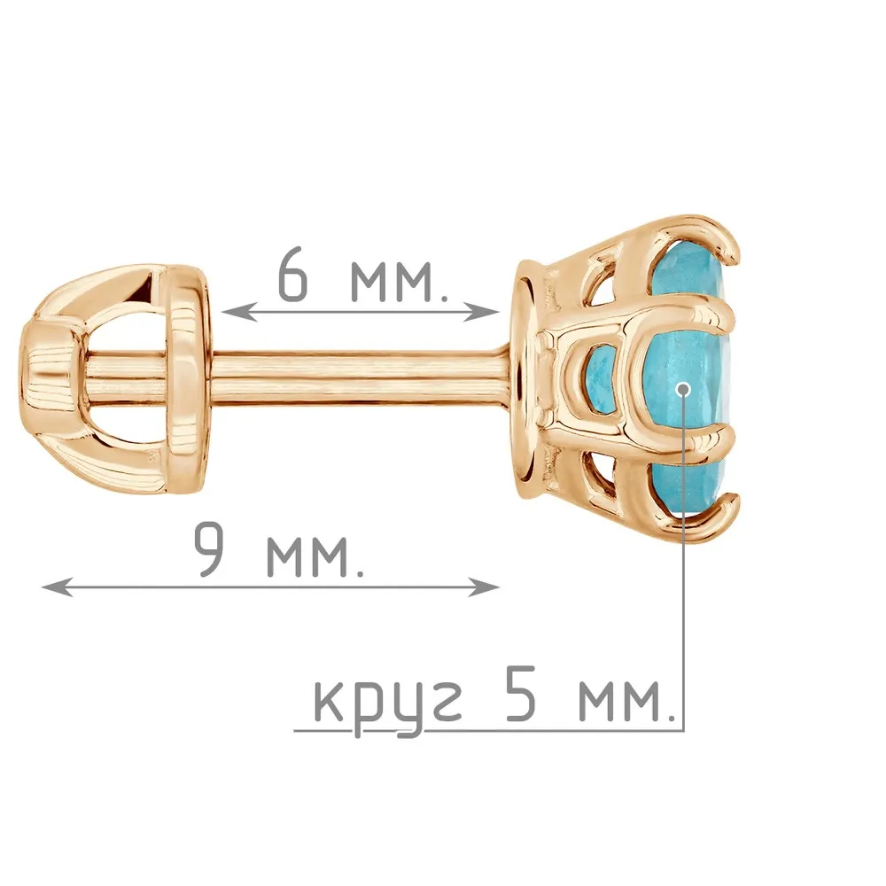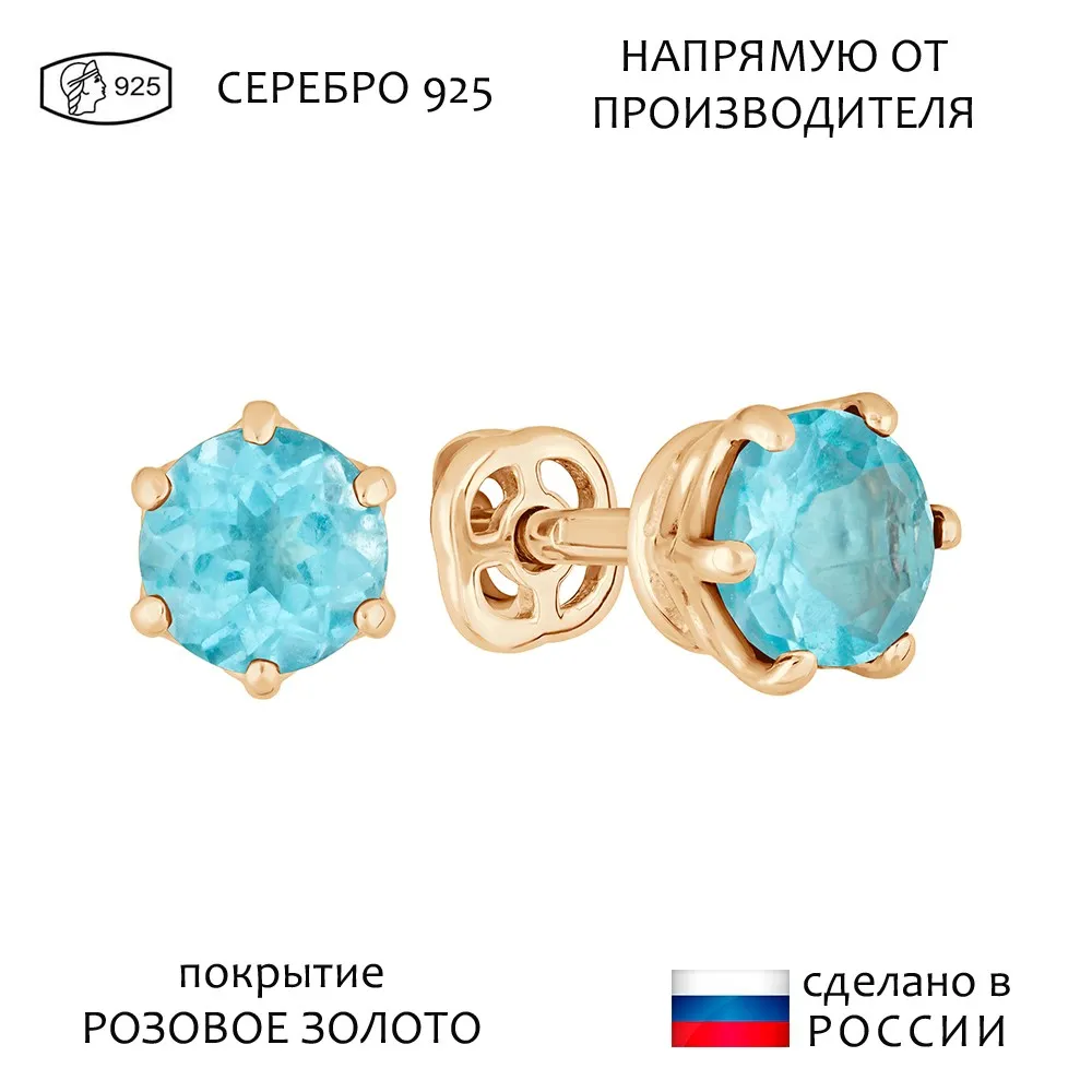 Серебряные серьги гвоздики (пусеты) с натуральным апатитом 5 мм. / Розовое Золото.
