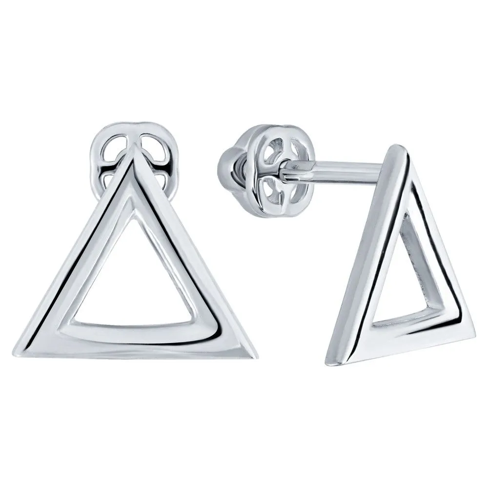 Серебряные серьги гвоздики (пусеты) - Треугольник / Чистое Серебро. Средний вес ювелирного украшения 1.35 гр. Все изделия собственного производства и имеют гарантию 12 месяцев. Арт. 8853AG.