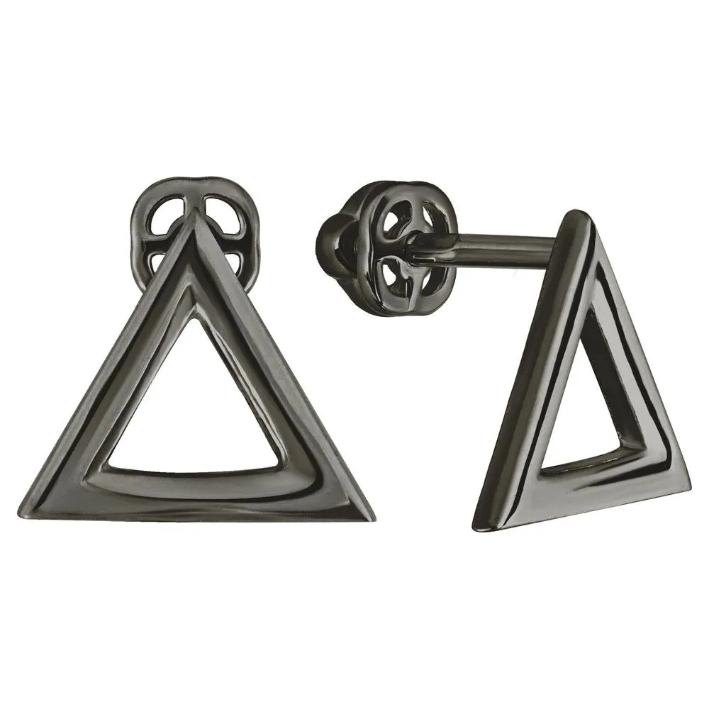 Серебряные серьги гвоздики (пусеты) - Треугольник / Черный Родий. Средний вес ювелирного украшения 1.35 гр. Все изделия собственного производства и имеют гарантию 12 месяцев. Арт. 8853BR.
