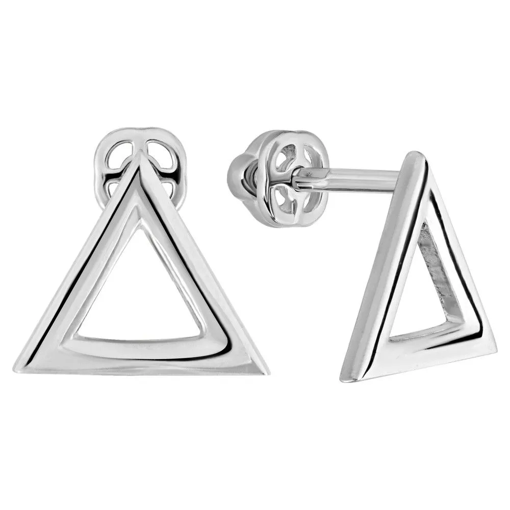Серебряные серьги гвоздики (пусеты) - Треугольник / Белый Родий. Средний вес ювелирного украшения 1.35 гр. Все изделия собственного производства и имеют гарантию 12 месяцев. Арт. 8853WR.