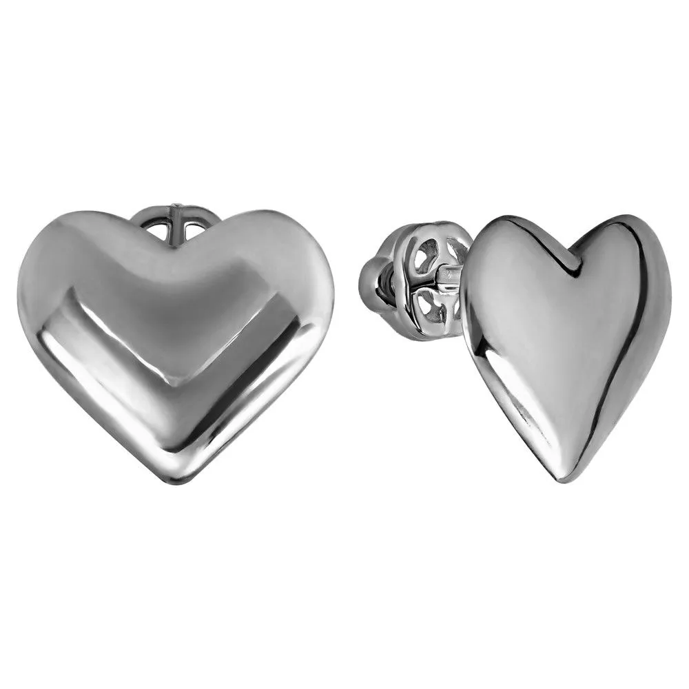 Серебряные серьги гвоздики (пусеты) - сердце большое / Палладий. Средний вес ювелирного украшения 1.44 гр. Все изделия собственного производства и имеют гарантию 12 месяцев. Арт. 8868PD.