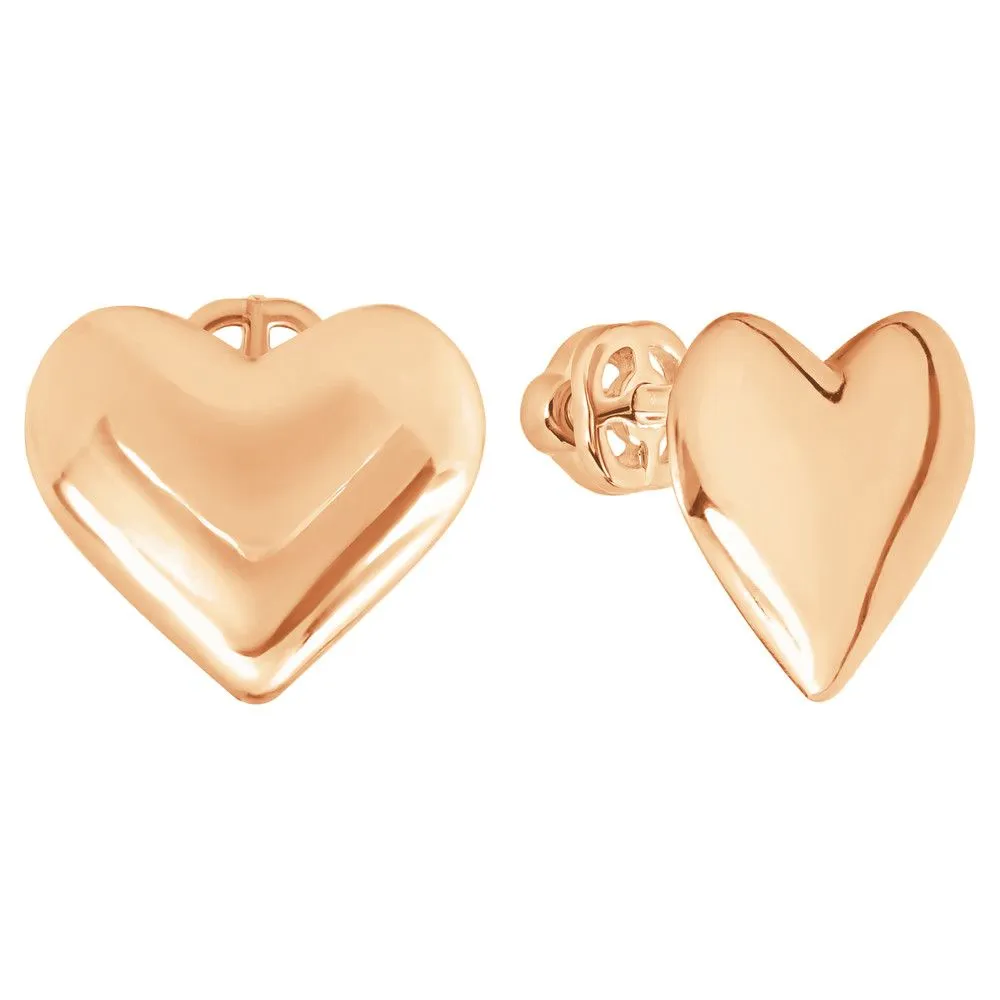 Серебряные серьги гвоздики (пусеты) - сердце большое / Красное золото. Средний вес ювелирного украшения 1.44 гр. Все изделия собственного производства и имеют гарантию 12 месяцев. Арт. 8868RG.