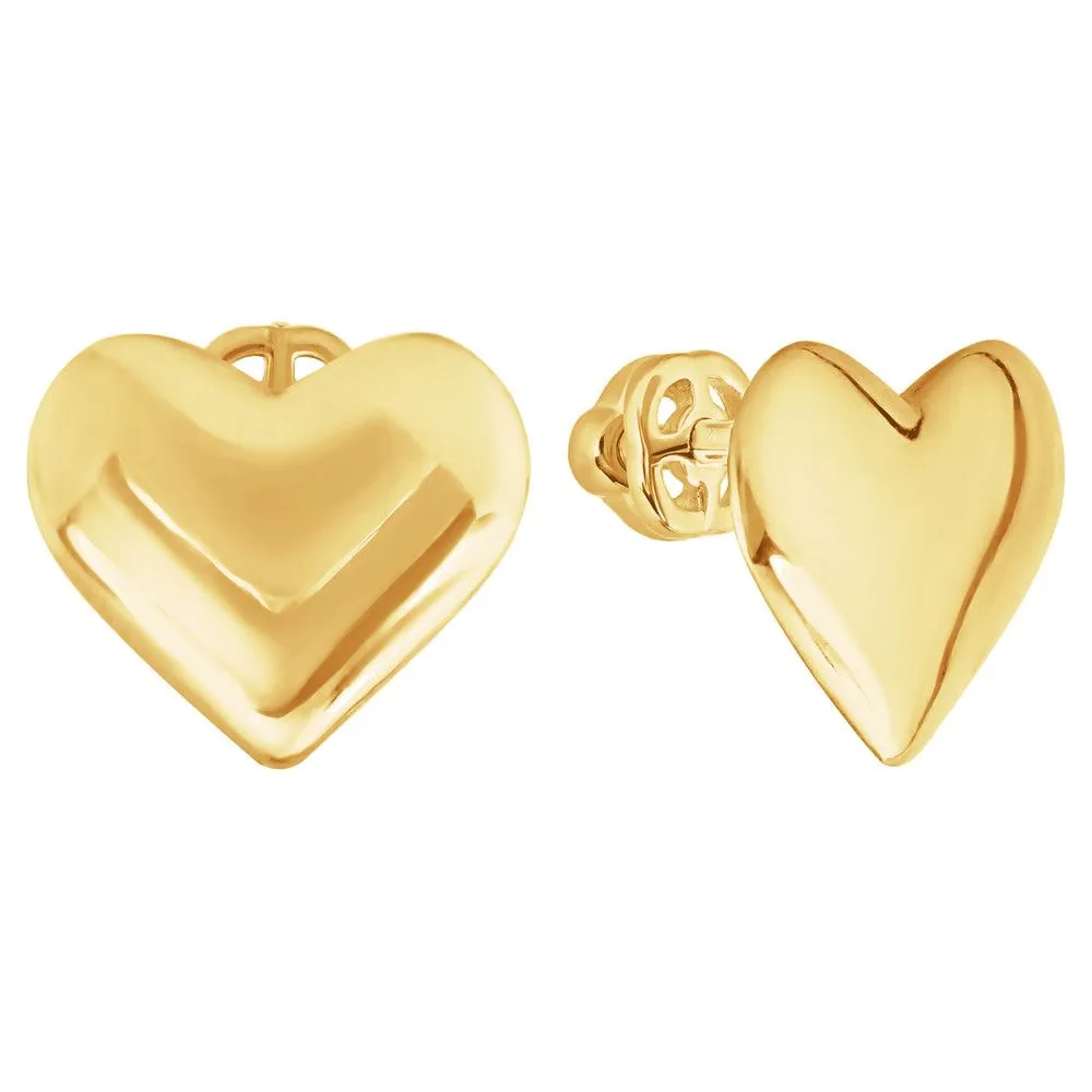 Серебряные серьги гвоздики (пусеты) - сердце большое / Желтое Золото. Средний вес ювелирного украшения 1.44 гр. Все изделия собственного производства и имеют гарантию 12 месяцев. Арт. 8868YG.