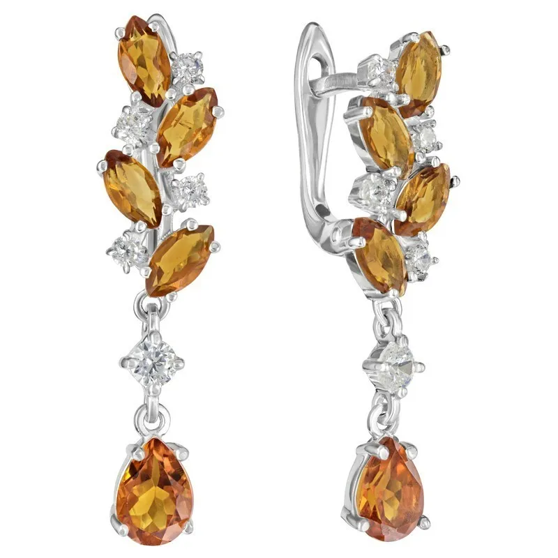 Серебряные серьги с натуральным цитрином (мадейра) - коллекция Росинка / Без покрытия