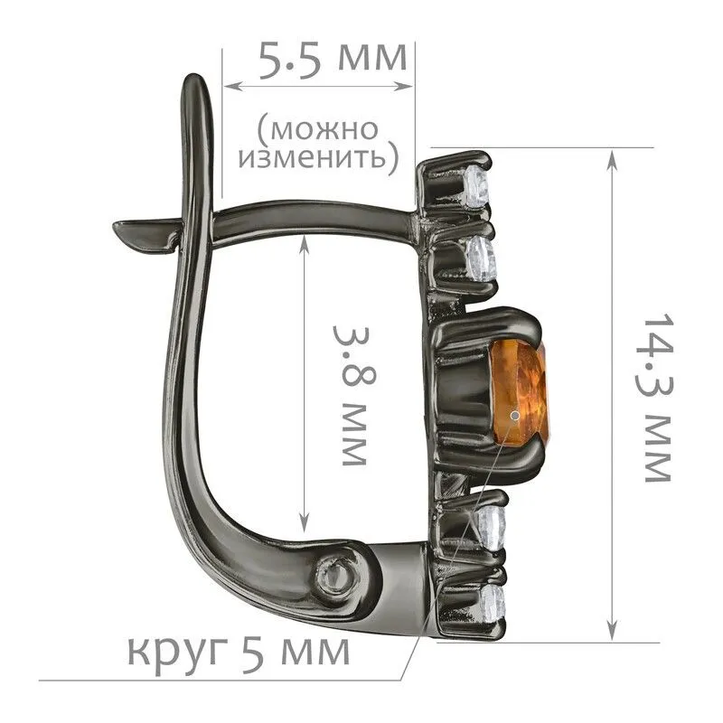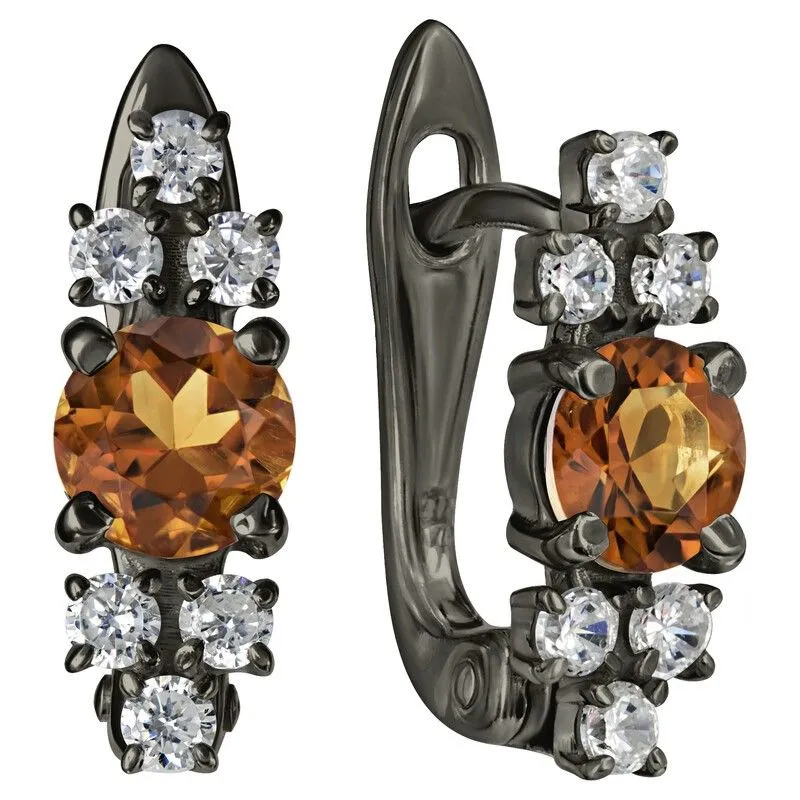 Серебряные серьги с натуральным цитрином (мадейра) - коллекция Нова / покрытие Черный Родий.Средний вес украшения с камнями 2.55 гр.Месторождение(я): Цитрин (Урал, Россия).Ювелирные вставки:Цитрин (Натуральный) круг 5 мм., средний вес: 0.48 карат.Белый Нанокристалл круг 2 мм., средний вес: 0.06 карат.Все изделия собственного производства и имеют гарантию 12 месяцев. Арт. 8707BR . Цитрин – камень, который активно использовался для инкрустации. С его помощью излечивали заболевания желудочно-кишечного тракта, он становился амулетом, приносящим удачу. Золотисто-жёлтый камень известен и любим очень давно за ряд своих положительных качеств.