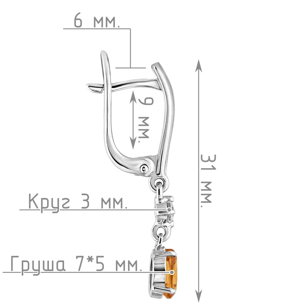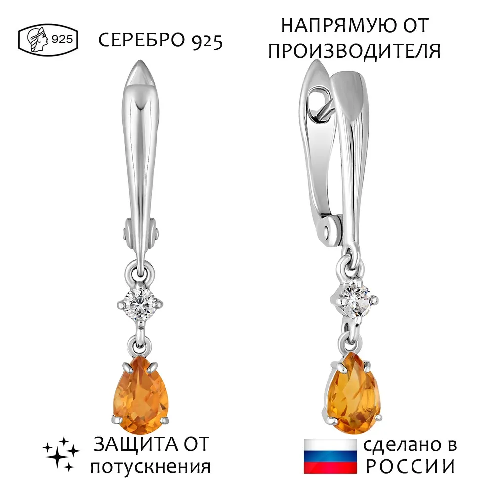 Серебряные серьги с натуральным цитрином - коллекция Алсу (малая) / Без покрытия.