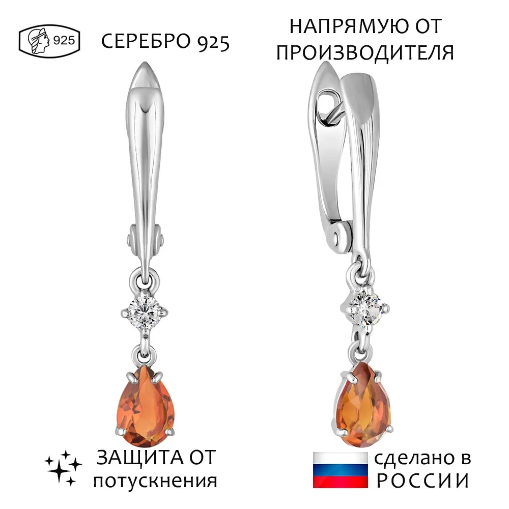 Серебряные серьги с натуральным цитрином (мадейра) - коллекция Алсу (малая) / Без покрытия.