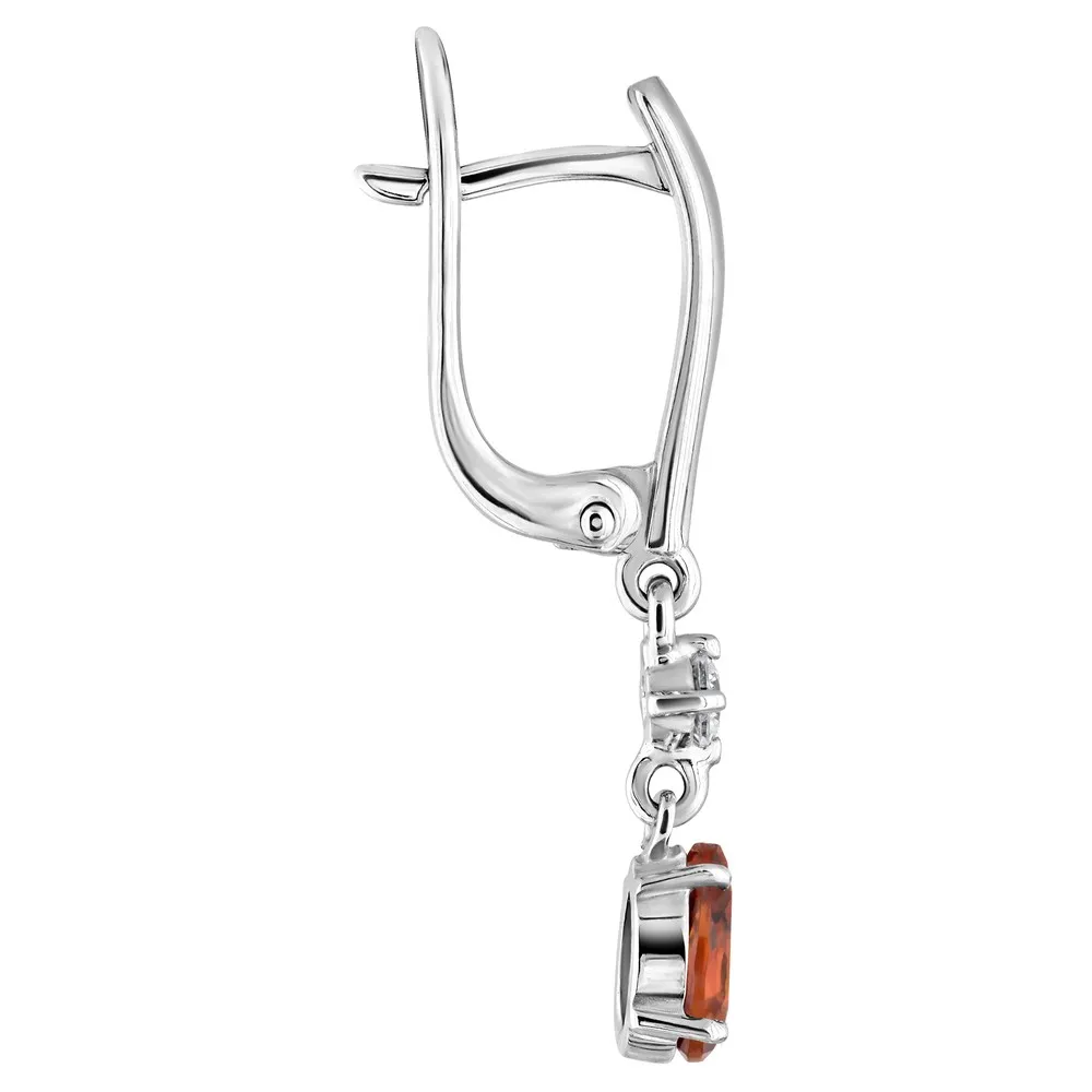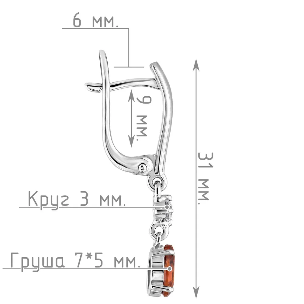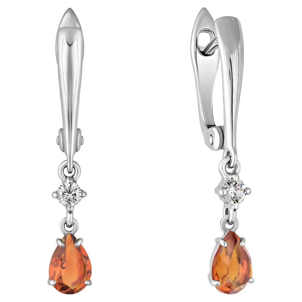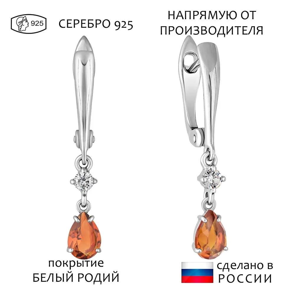 Серебряные серьги с натуральным цитрином (мадейра) - коллекция Алсу (малая) / Белый Родий.