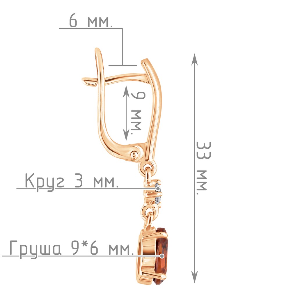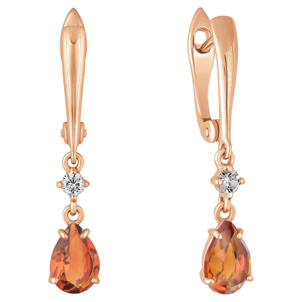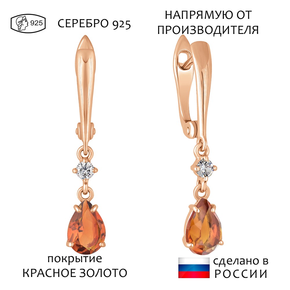 Серебряные серьги с натуральным цитрином (мадейра) - коллекция Алсу (большая) / Красное золото.