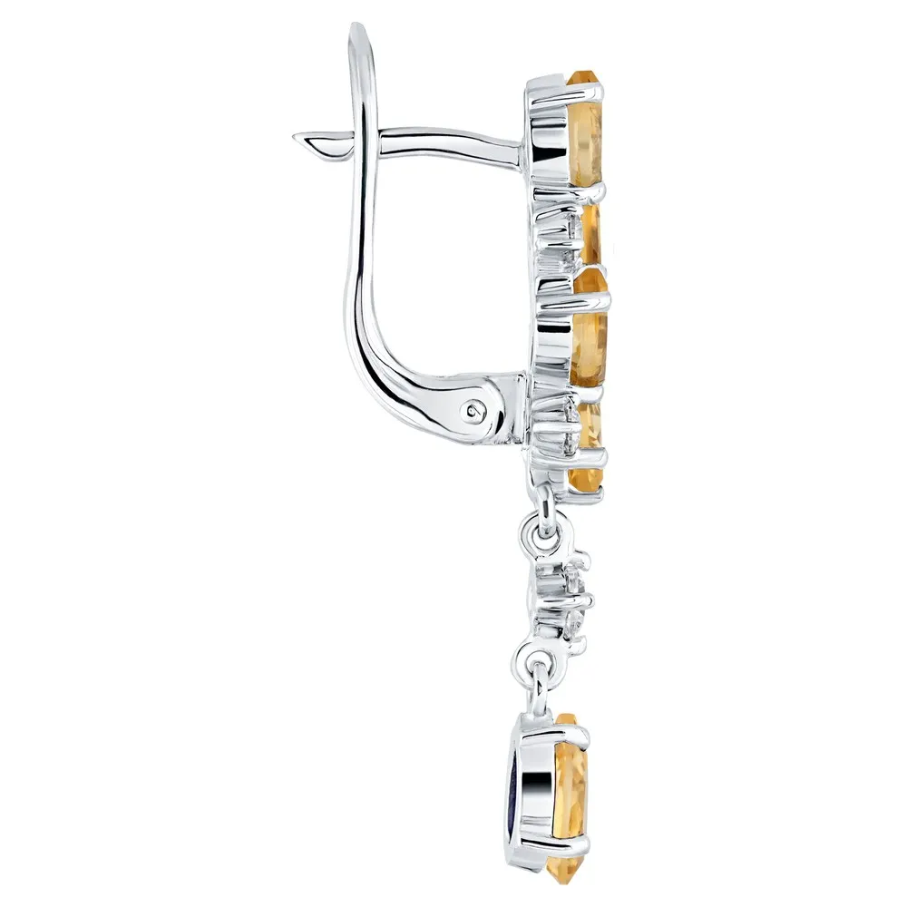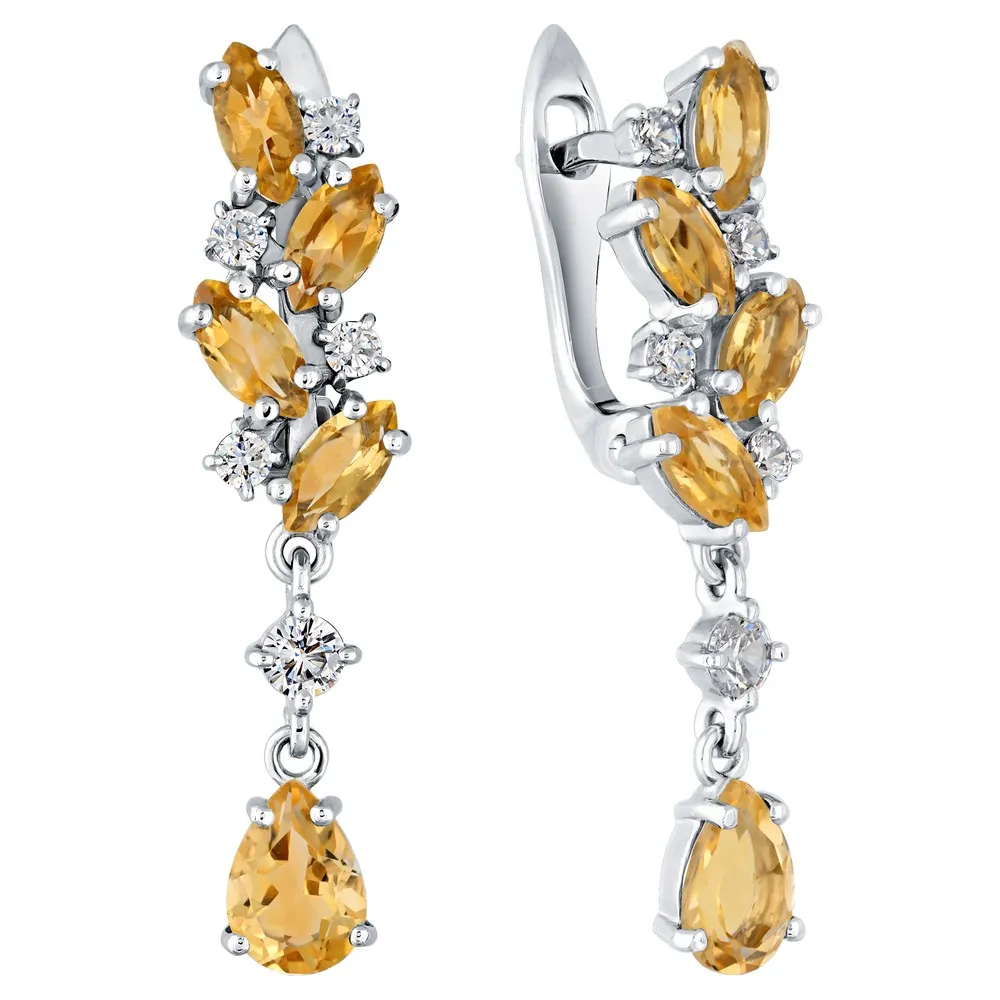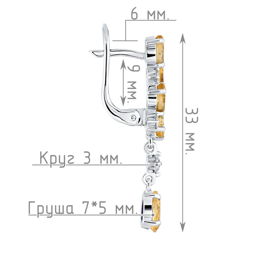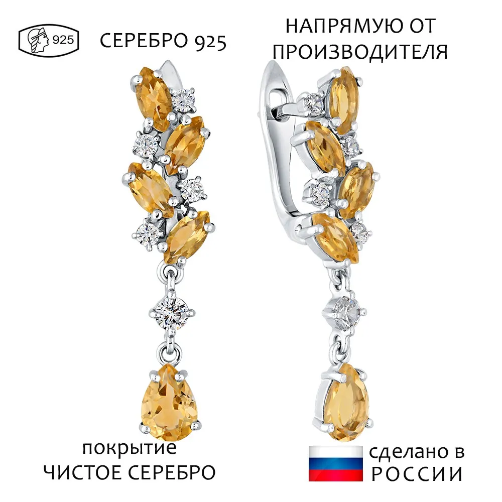Серебряные серьги с натуральным цитрином - коллекция Росинка / Чистое Серебро.