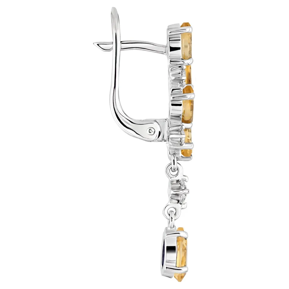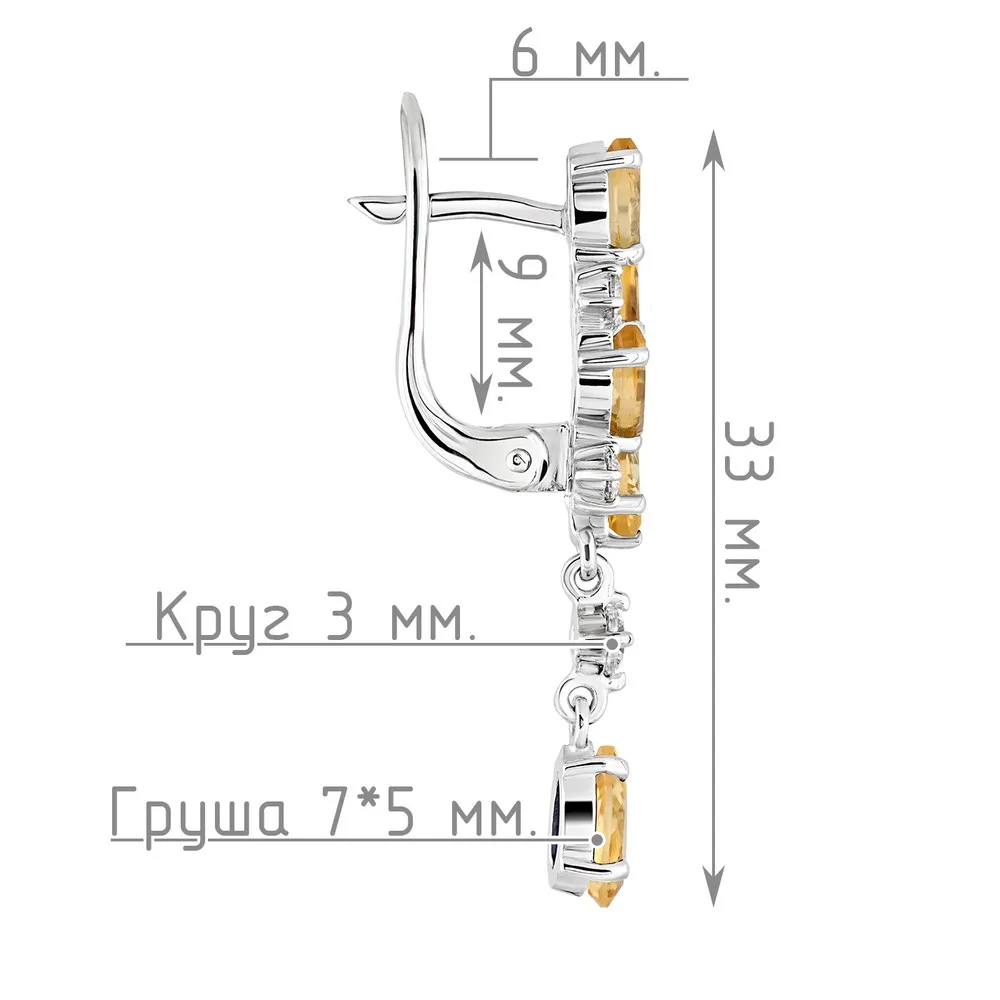 Серебряные серьги с натуральным цитрином - коллекция Росинка / Без покрытия.
