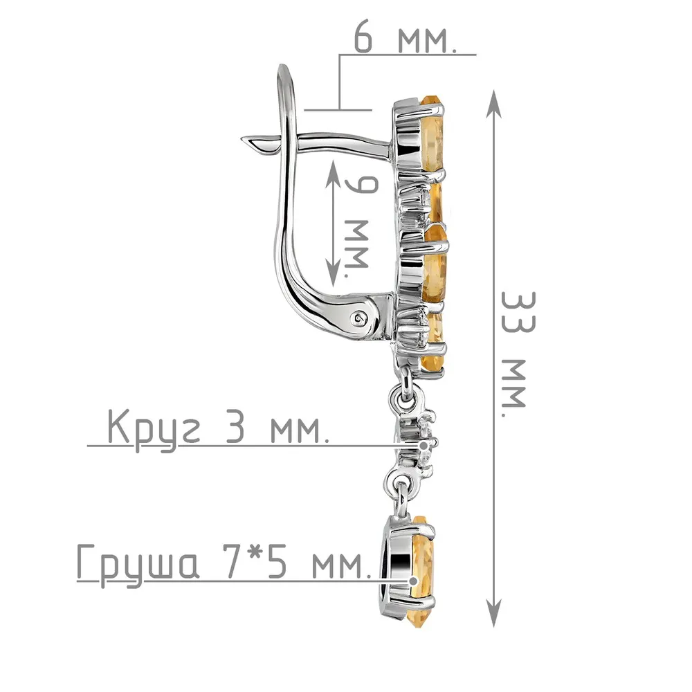 Серебряные серьги с натуральным цитрином - коллекция Росинка / Палладий.