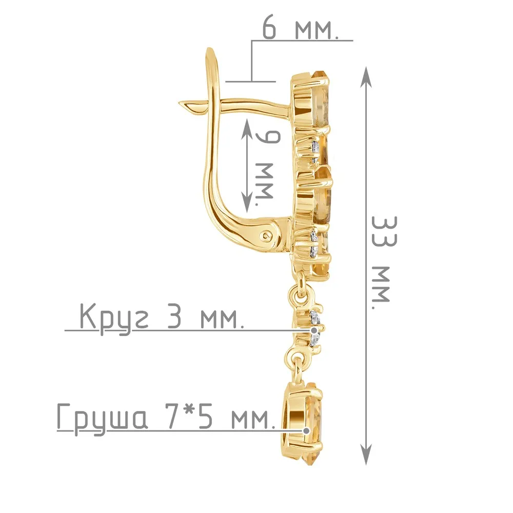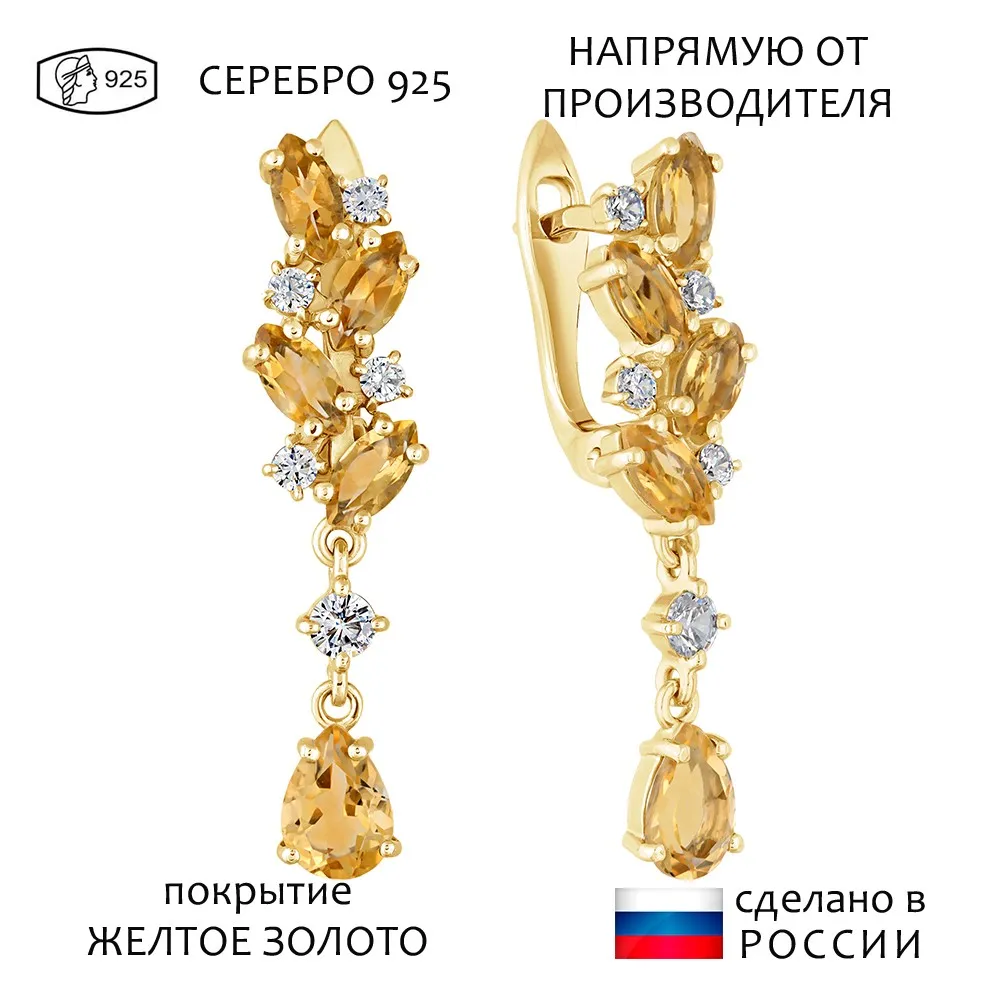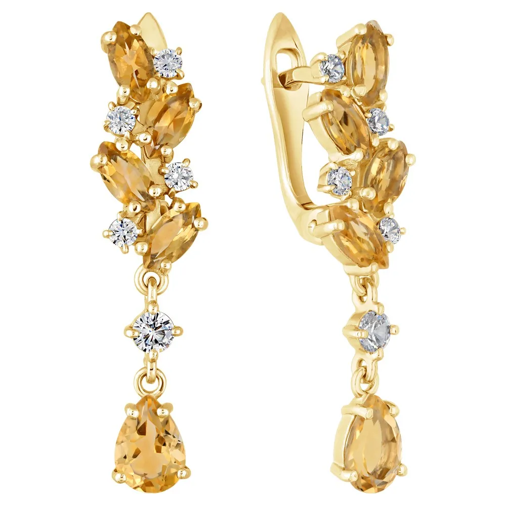 Серебряные серьги с натуральным цитрином - коллекция Росинка / Желтое Золото.