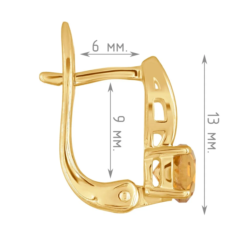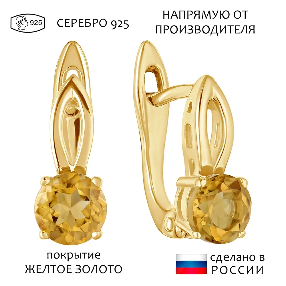 Серебряные серьги с натуральным цитрином - коллекция Мона. Серебряные серьги 925 пробы с покрытием желтое золото. Цвет покрытия соответствует швейцарскому цветовому стандарту NIHS -FF24ct и цвету чистого золото 999.99. На последней фотографии мы разместили сравнительную фотографию 3 цвета золотого покрытия. Помимо предания золотого цвета Вашему изделию, тонкий слой золота защищает от окисления. Для более стойкого эффекта золочения и долговечности покрытия мы дополнительно наносим подслой палладия (Pd). Средний вес изделия с камнем составляет 2.61 гр. Месторождение(я): Цитрин (Урал, Россия). Цитрин (Натуральный) круг 5 мм., средний вес: 0.55 карат. Все изделия собственного производства. Гарантия 12 месяцев.Арт. 7718. Цитрин – камень, который активно использовался для инкрустации. С его помощью излечивали заболевания желудочно-кишечного тракта, он становился амулетом, приносящим удачу. Золотисто-жёлтый камень известен и любим очень давно за ряд своих положительных качеств.