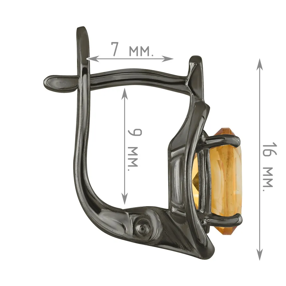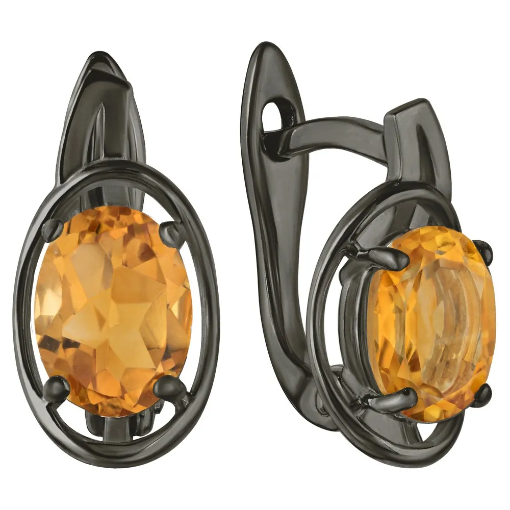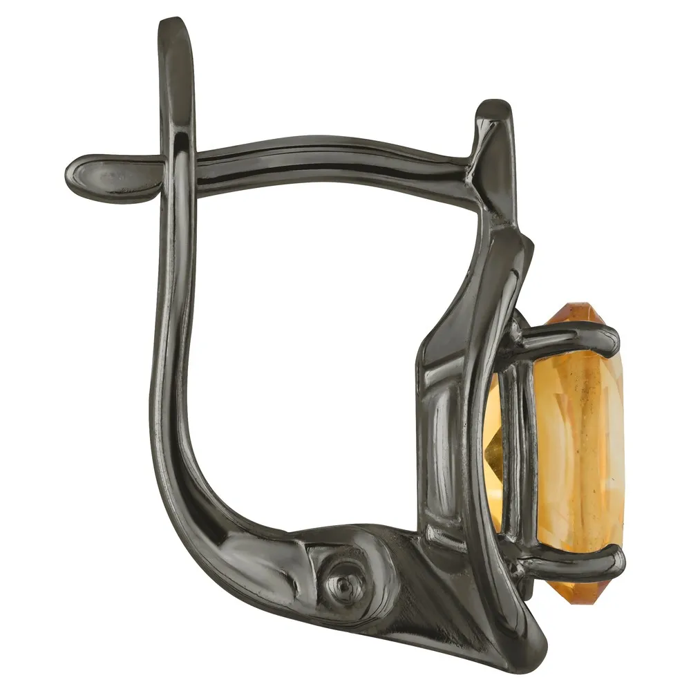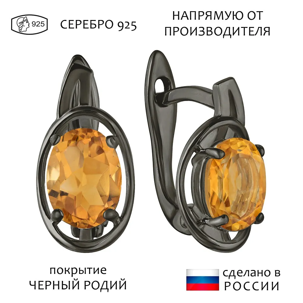 Серебряные серьги с натуральным цитрином - коллекция Фрейя, покрытие Черный Родий. Средний вес украшения с камнем составляет 3.44 гр. Месторождение(я): Цитрин (Урал, Россия).