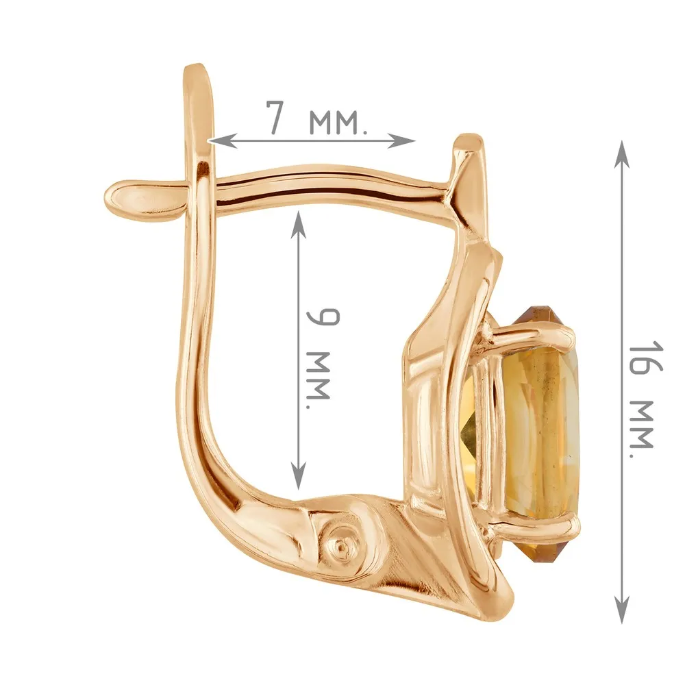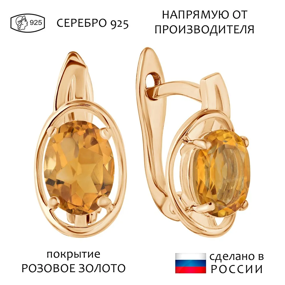 Серебряные серьги с натуральным цитрином - коллекция Фрейя. Серебряные серьги 925 пробы с покрытием розовое золото. Цвет покрытия соответствует швейцарскому цветовому стандарту NIHS -4N и цвету розового золота 585 в России. На последней фотографии мы разместили сравнительную фотографию 3 цвета золотого покрытия. Помимо предания золотого цвета Вашему изделию, тонкий слой золота защищает от окисления. Для более стойкого эффекта золочения и долговечности покрытия мы дополнительно наносим подслой палладия (Pd). Средний вес изделия с камнем составляет 3.44 гр. Месторождение(я): Цитрин (Урал, Россия). Цитрин (Натуральный) овал 6*8 мм., средний вес: 1.31 карат. Все изделия собственного производства. Гарантия 12 месяцев.Арт. 7756. Цитрин – камень, который активно использовался для инкрустации. С его помощью излечивали заболевания желудочно-кишечного тракта, он становился амулетом, приносящим удачу. Золотисто-жёлтый камень известен и любим очень давно за ряд своих положительных качеств.