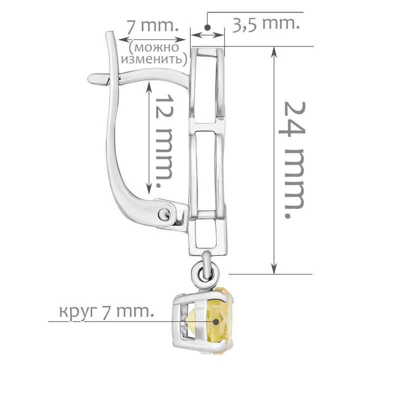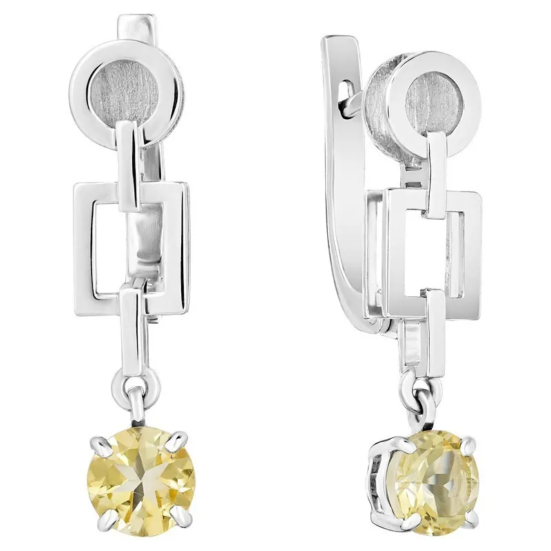 Серебряные серьги с натуральным цитрином - коллекция Классик / покрытие Чистое Серебро