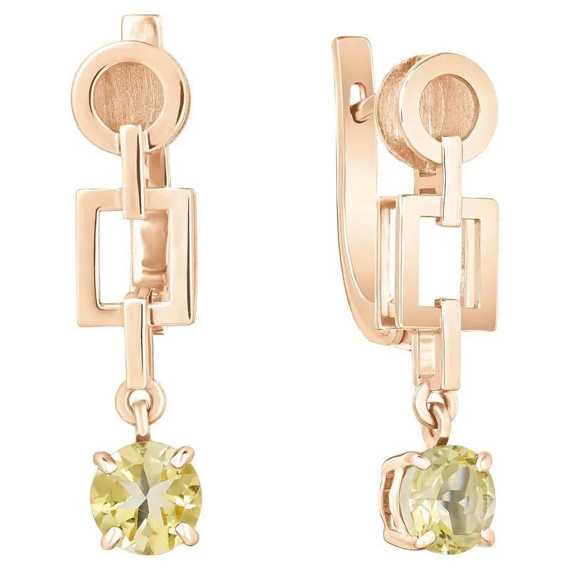 Серебряные серьги с натуральным цитрином - коллекция Классик / покрытие Красное Золото
