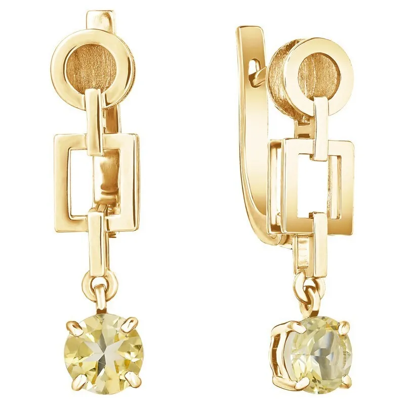 Серебряные серьги с натуральным цитрином - коллекция Классик / покрытие Желтое Золото