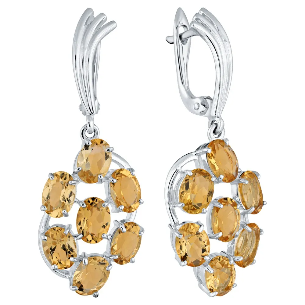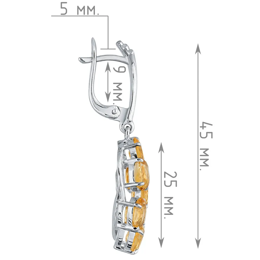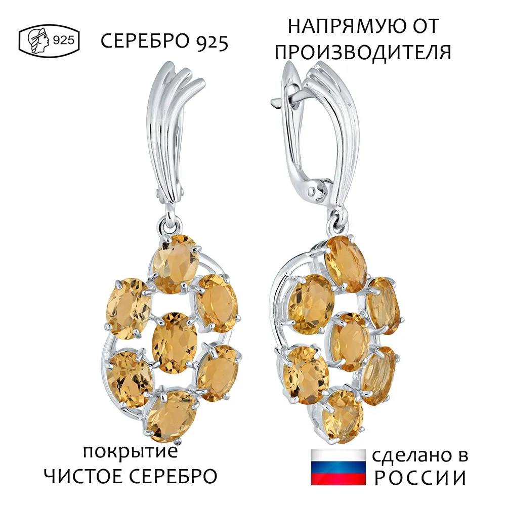 Серебряные серьги с натуральным цитрином - коллекция Аэлита / покрытие Чистое Серебро