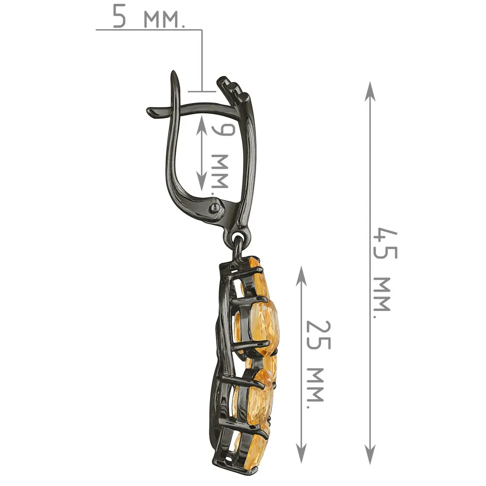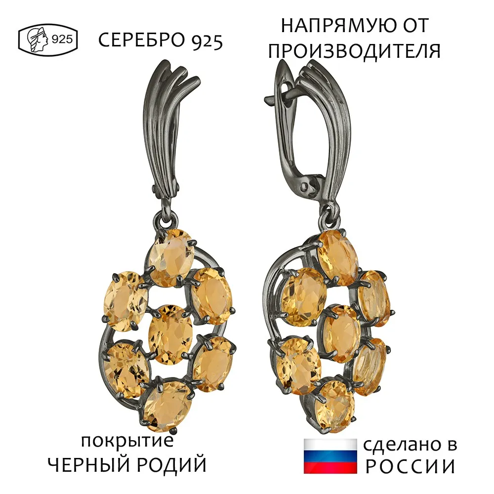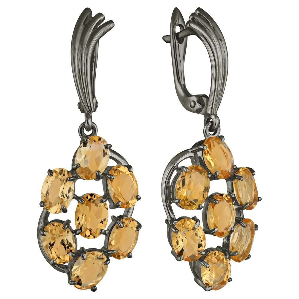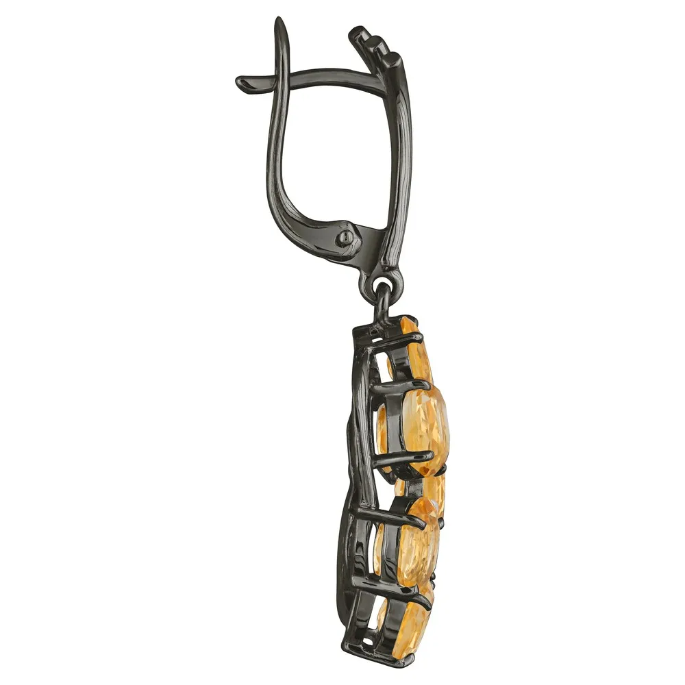 Серебряные серьги с натуральным цитрином - коллекция Аэлита, покрытие Черный Родий.