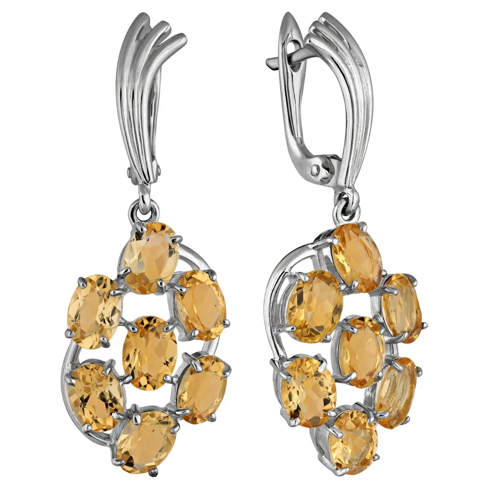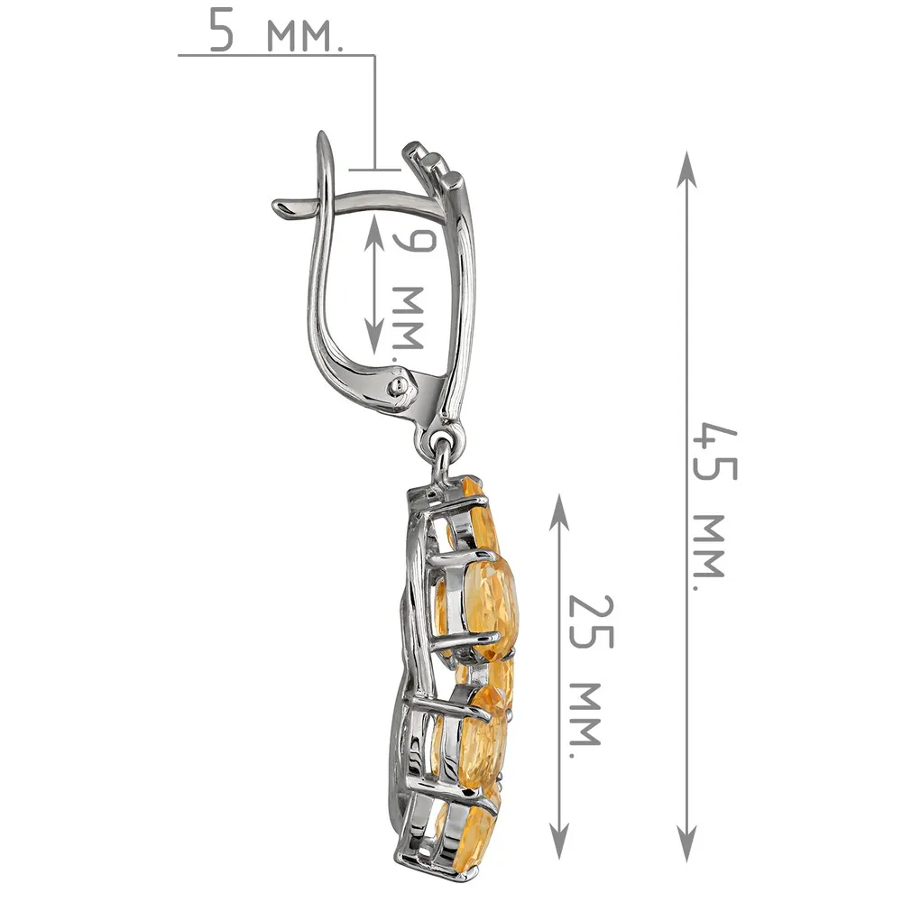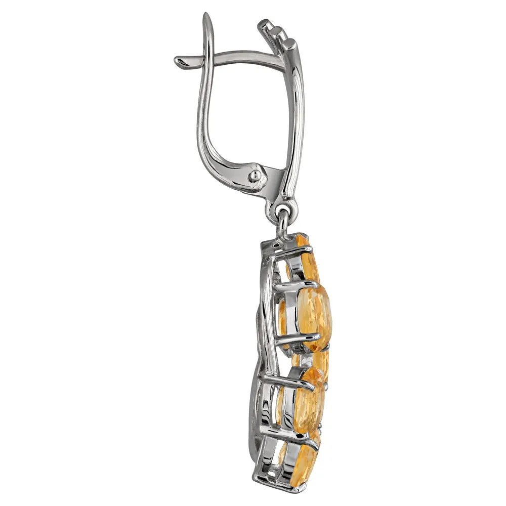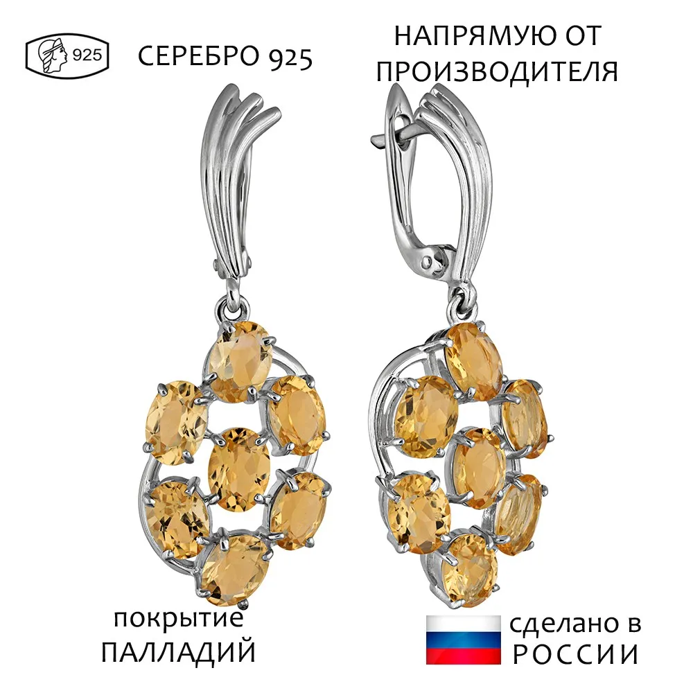 Серебряные серьги с натуральным цитрином - коллекция Аэлита / покрытие Палладий