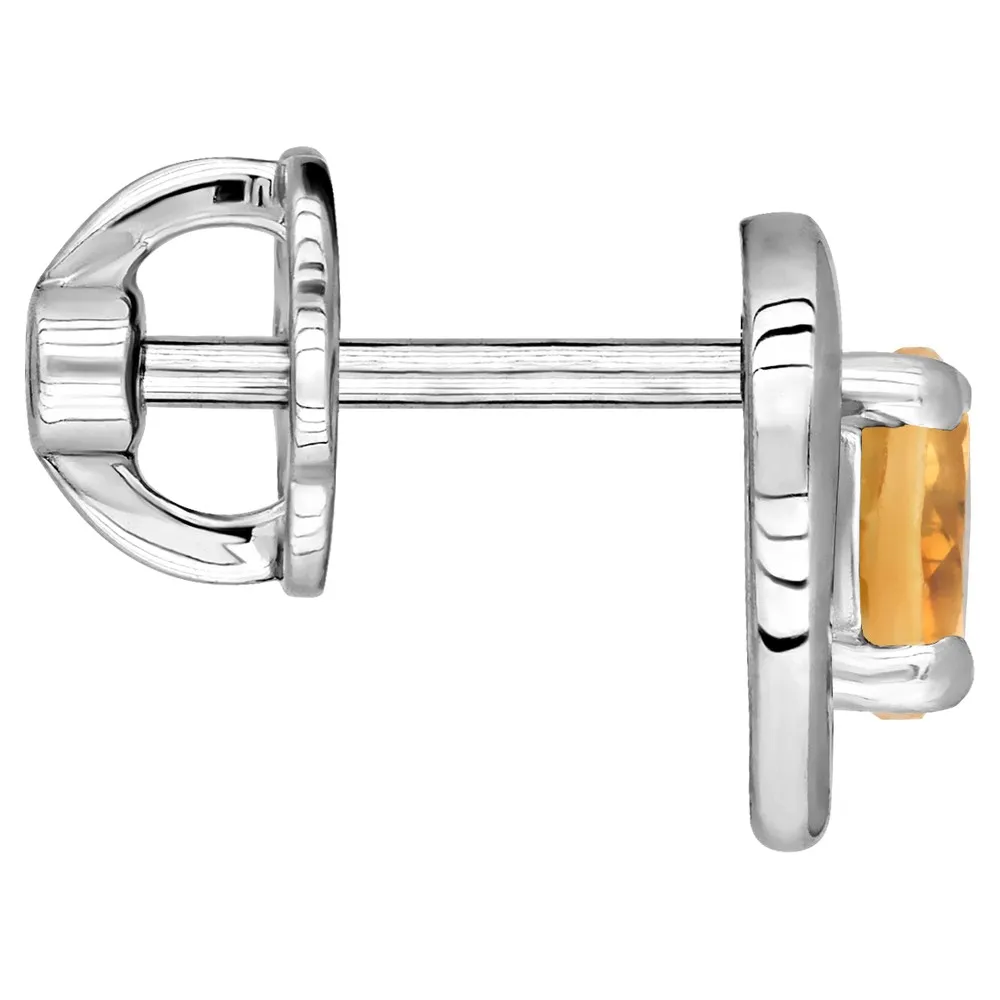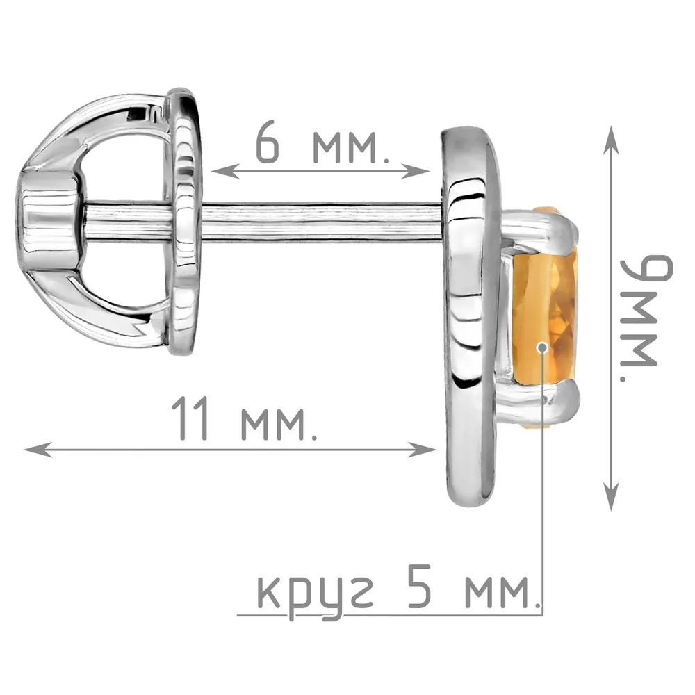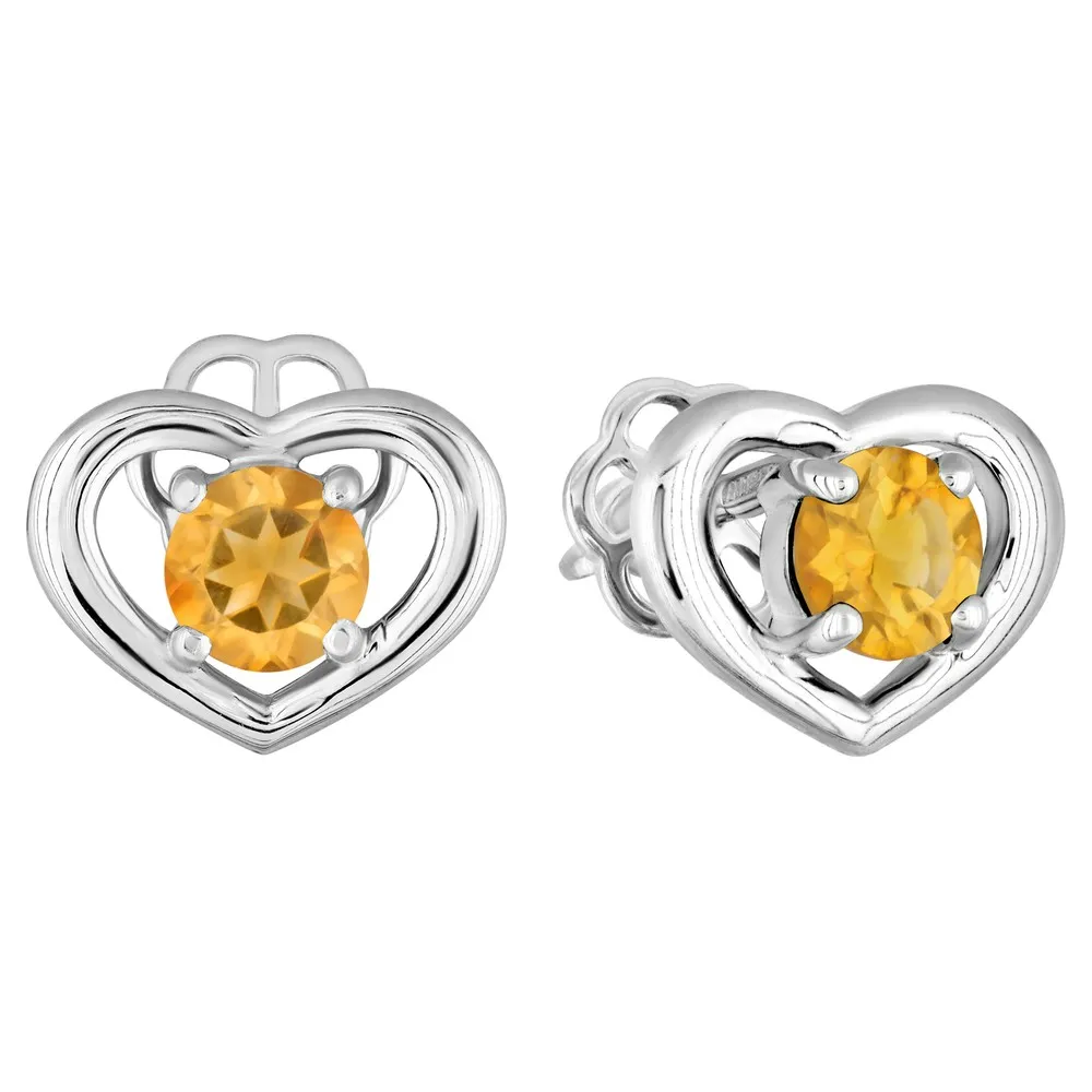 Серебряные серьги гвоздики (пусеты) с натуральным цитрином - Сердце / Без покрытия.