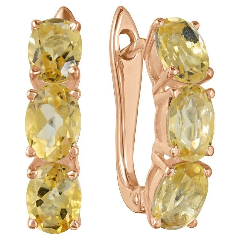 Серебряные серьги с натуральным цитрином - коллекция Муза. Серебряные серьги 925 пробы с покрытием красное золото. Цвет покрытия соответствует швейцарскому цветовому стандарту NIHS -5N и цвету красного золота 585 в России. На последней фотографии мы разместили сравнительную фотографию 3 цвета золотого покрытия. Помимо предания золотого цвета Вашему изделию, тонкий слой золота защищает от окисления. Для более стойкого эффекта золочения и долговечности покрытия мы дополнительно наносим подслой палладия (Pd). Средний вес изделия с камнями 2.39 гр. Месторождение(я): Цитрин (Урал, Россия) Цитрин (Натуральный) овал 5*7 мм., средний вес: 0,90 карат. Размер лицевой части: 5*21 мм. Все изделия собственного производства. Гарантия 12 месяцев.Арт. 7920. Цитрин – камень, который активно использовался для инкрустации. С его помощью излечивали заболевания желудочно-кишечного тракта, он становился амулетом, приносящим удачу. Золотисто-жёлтый камень известен и любим очень давно за ряд своих положительных качеств.