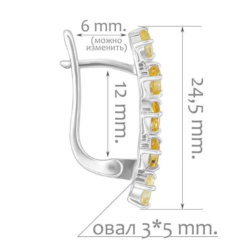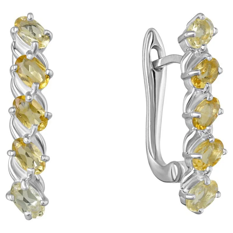 Серебряные серьги с натуральным цитрином - коллекция Колосок / Без покрытия