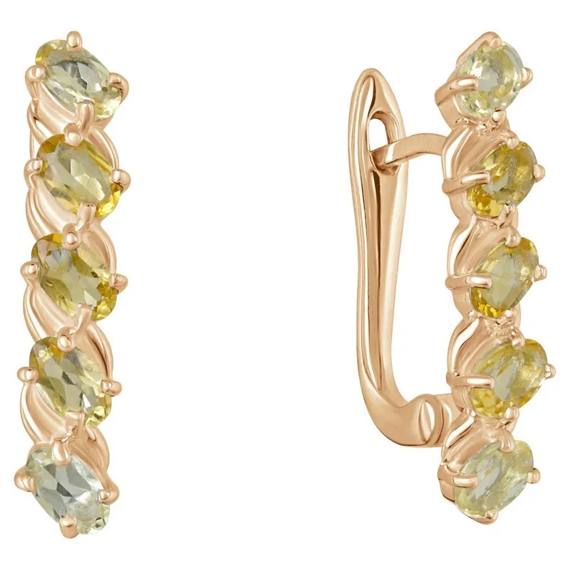 Серебряные серьги с натуральным цитрином - коллекция Колосок. Серебряные серьги 925 пробы с покрытием розовое золото. Цвет покрытия соответствует швейцарскому цветовому стандарту NIHS -4N и цвету розового золота 585 в России. На последней фотографии мы разместили сравнительную фотографию 3 цвета золотого покрытия. Помимо предания золотого цвета Вашему изделию, тонкий слой золота защищает от окисления. Для более стойкого эффекта золочения и долговечности покрытия мы дополнительно наносим подслой палладия (Pd). Средний вес изделия с камнями 4.22 гр. Месторождение: Цитрин (Урал, Россия). Цитрин (Натуральный) овал 3*5 мм., средний вес: 0.22 карат. Все изделия собственного производства. Арт. 7978. Цитрин – камень, который активно использовался для инкрустации. С его помощью излечивали заболевания желудочно-кишечного тракта, он становился амулетом, приносящим удачу. Золотисто-жёлтый камень известен и любим очень давно за ряд своих положительных качеств.