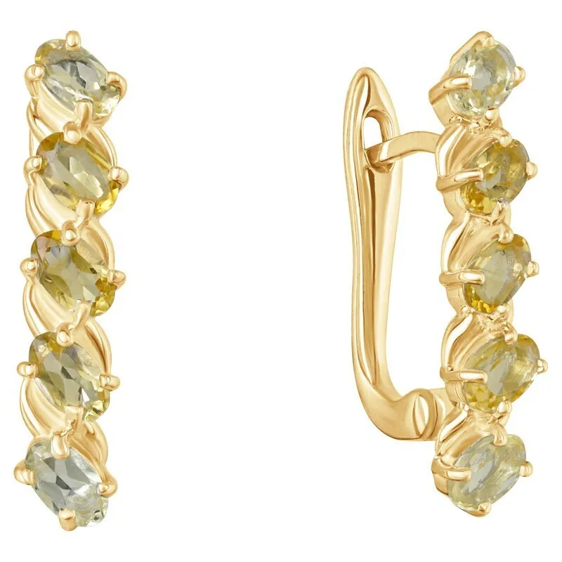 Серебряные серьги с натуральным цитрином - коллекция Колосок. Серебряные серьги 925 пробы с покрытием желтое золото. Цвет покрытия соответствует швейцарскому цветовому стандарту NIHS -FF24ct и цвету чистого золото 999.99. На последней фотографии мы разместили сравнительную фотографию 3 цвета золотого покрытия. Помимо предания золотого цвета Вашему изделию, тонкий слой золота защищает от окисления. Для более стойкого эффекта золочения и долговечности покрытия мы дополнительно наносим подслой палладия (Pd). Средний вес изделия с камнями 4.22 гр. Месторождение: Цитрин (Урал, Россия). Цитрин (Натуральный) овал 3*5 мм., средний вес: 0.22 карат. Все изделия собственного производства. Арт. 7978. Цитрин – камень, который активно использовался для инкрустации. С его помощью излечивали заболевания желудочно-кишечного тракта, он становился амулетом, приносящим удачу. Золотисто-жёлтый камень известен и любим очень давно за ряд своих положительных качеств.