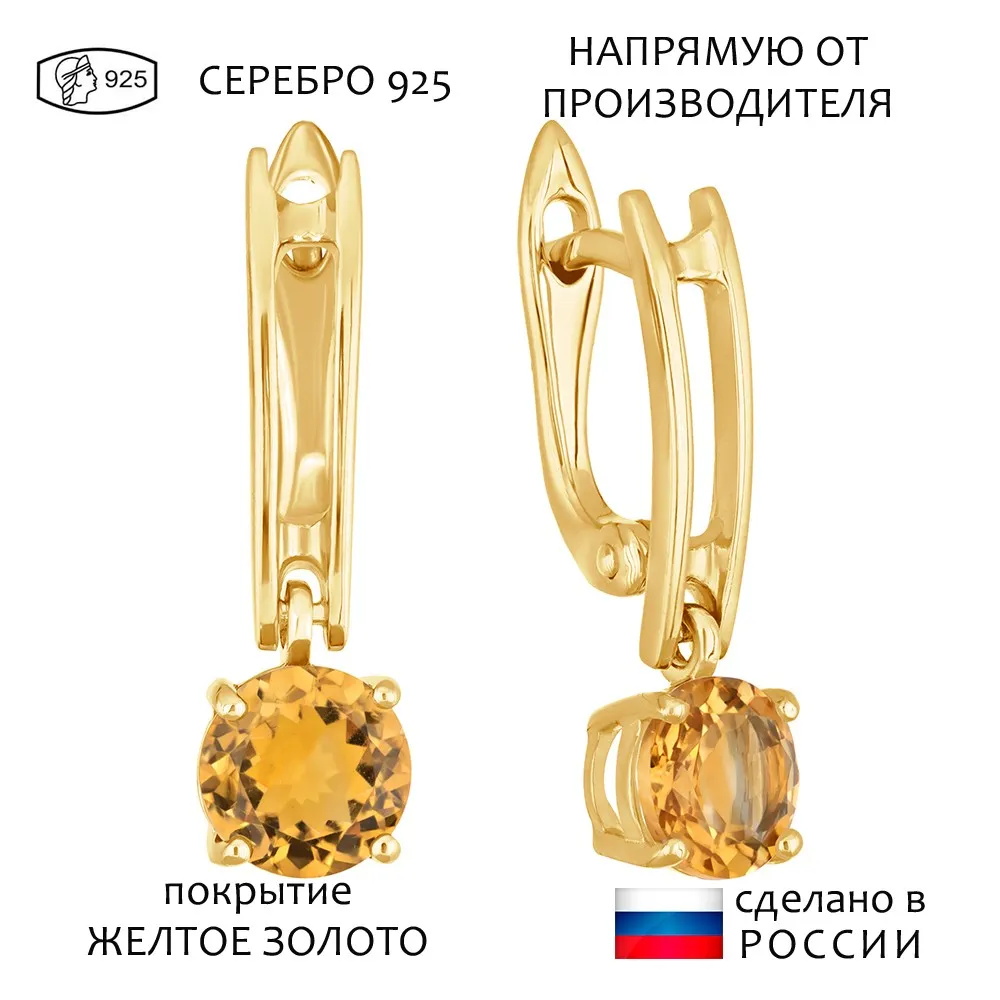 Серебряные серьги с натуральным цитрином - коллекция Классик (мини). Серебряные серьги 925 пробы с покрытием желтое золото. Цвет покрытия соответствует швейцарскому цветовому стандарту NIHS -FF24ct и цвету чистого золото 999.99. На последней фотографии мы разместили сравнительную фотографию 3 цвета золотого покрытия. Помимо предания золотого цвета Вашему изделию, тонкий слой золота защищает от окисления. Для более стойкого эффекта золочения и долговечности покрытия мы дополнительно наносим подслой палладия (Pd). Средний вес изделия с камнями 3.52 гр. Месторождение: Цитрин (Урал, Россия). Цитрин (Натуральный) круг 7 мм., средний вес: 1.38 карат. Все изделия собственного производства. Гарантия 12 месяцев.Арт. 8223. Цитрин – камень, который активно использовался для инкрустации. С его помощью излечивали заболевания желудочно-кишечного тракта, он становился амулетом, приносящим удачу. Золотисто-жёлтый камень известен и любим очень давно за ряд своих положительных качеств.