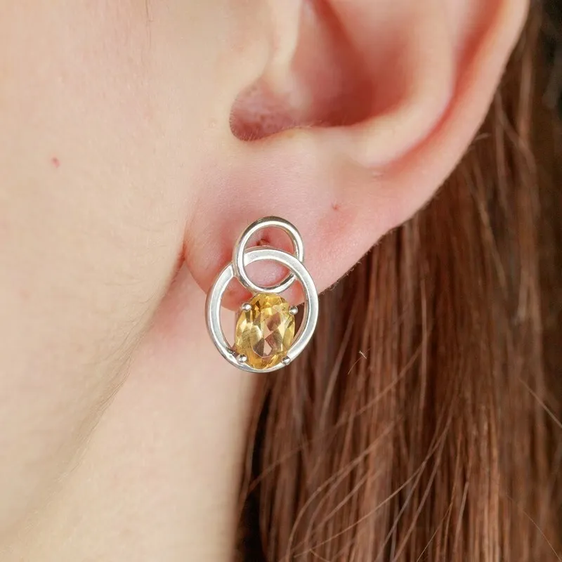 Серебряные серьги с натуральным цитрином - коллекция Юнона / Без покрытия