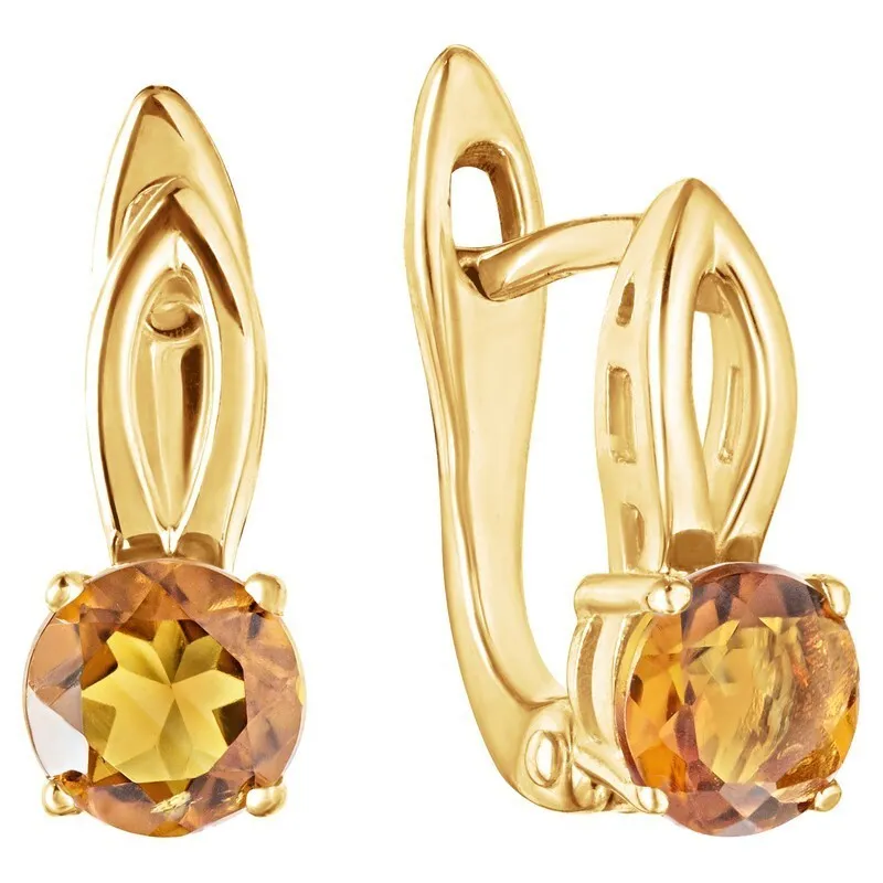 Серебряные серьги с натуральным цитрином (мадейра) - коллекция Мона / покрытие Желтое Золото