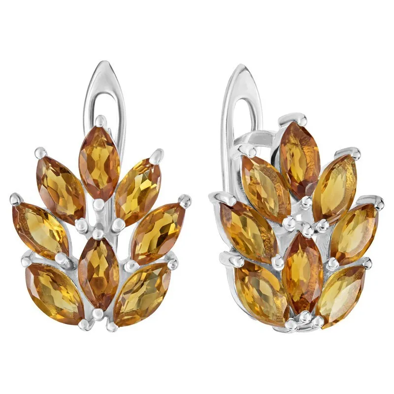 Серебряные серьги с натуральным цитрином (мадейра) - коллекция Искра / покрытие Чистое Серебро