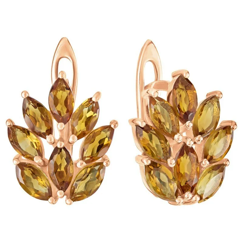 Серебряные серьги с натуральным цитрином (мадейра) - коллекция Искра / покрытие Красное Золото