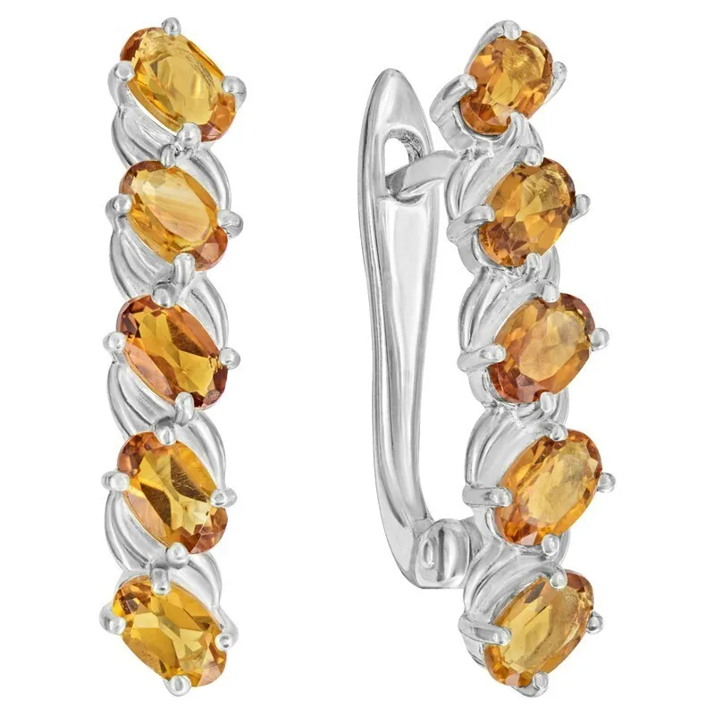 Серебряные серьги с натуральным цитрином (мадейра) - коллекция Колосок. Средний вес украшения с камнями 3.25 гр. Месторождение: Цитрин (Урал, Россия). Цитрин (Натуральный) овал 3*5 мм., средний вес: 0.24 карат. Все изделия собственного производства и имеют гарантию 12 месяцев. Арт. 8515. Цитрин – камень, который активно использовался для инкрустации. С его помощью излечивали заболевания желудочно-кишечного тракта, он становился амулетом, приносящим удачу. Золотисто-жёлтый камень известен и любим очень давно за ряд своих положительных качеств.