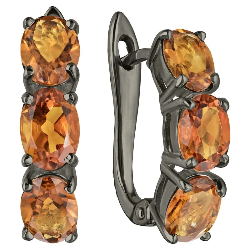 Серебряные серьги с натуральным цитрином (мадейра) - коллекция Муза, покрытие Черный Родий.